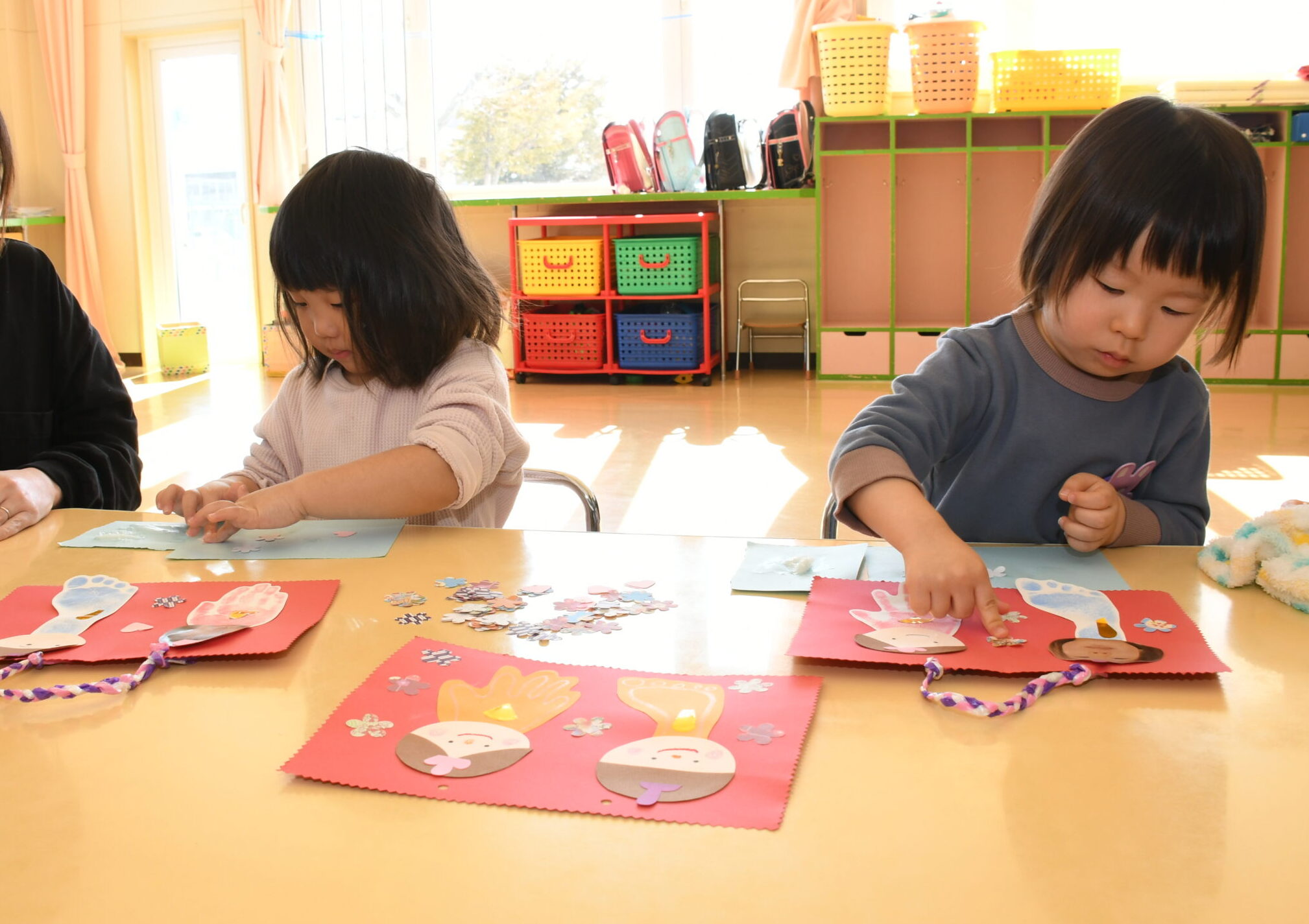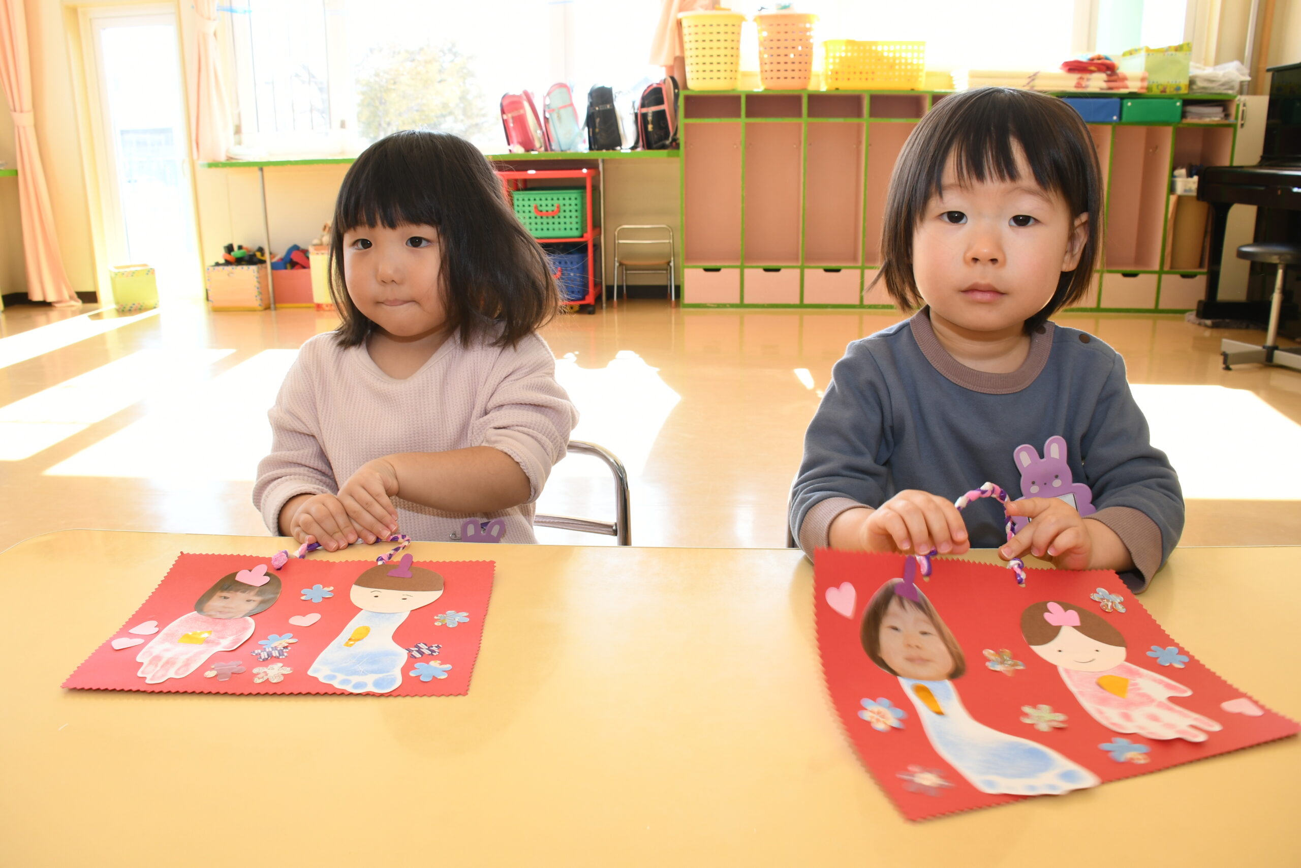 それぞれのお部屋に持ち帰りお友達の作品を見せ合ったり、並べて飾りクリスマス会に期待をふくらませています。