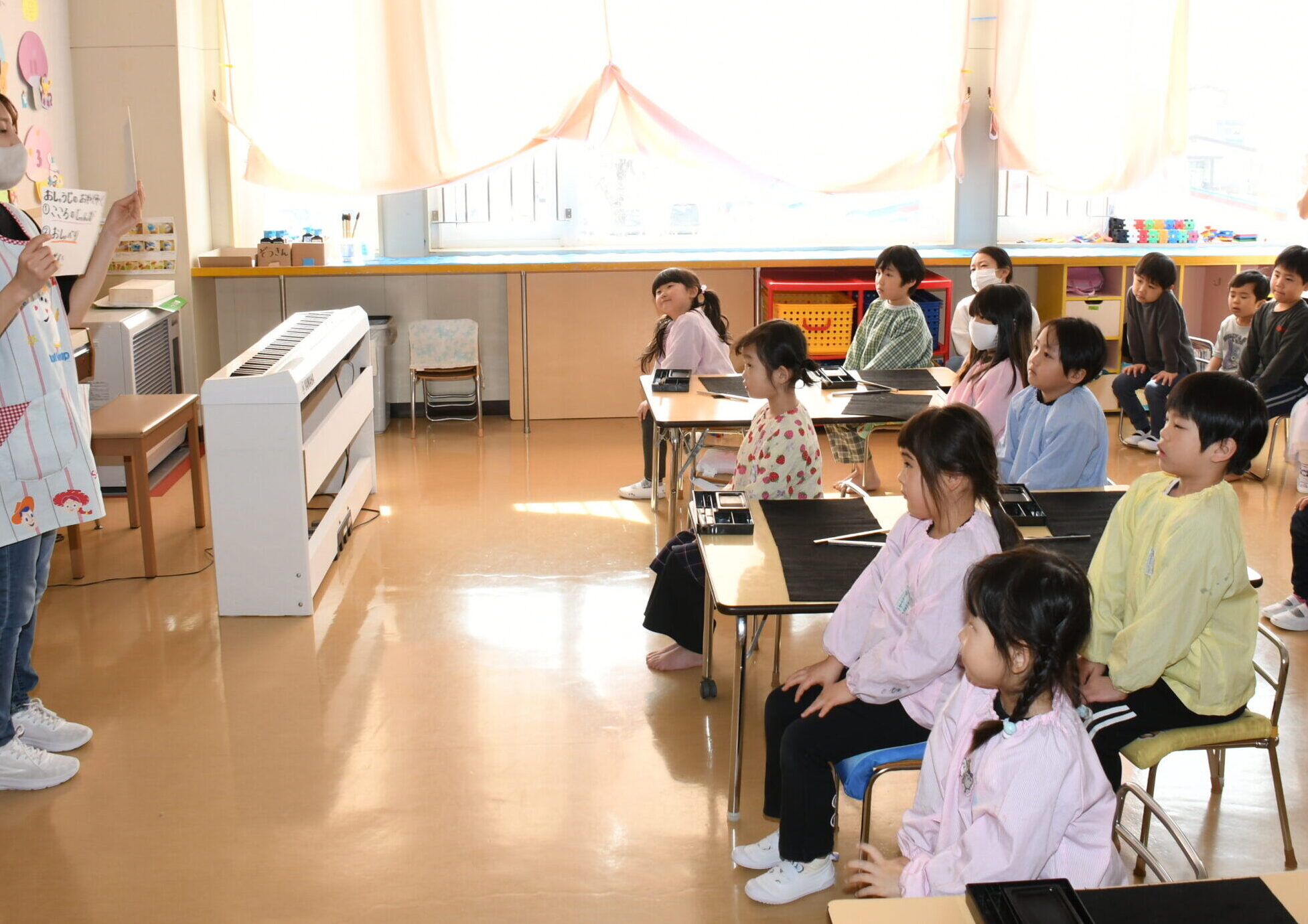 先生たちのハンドベルを見ています -