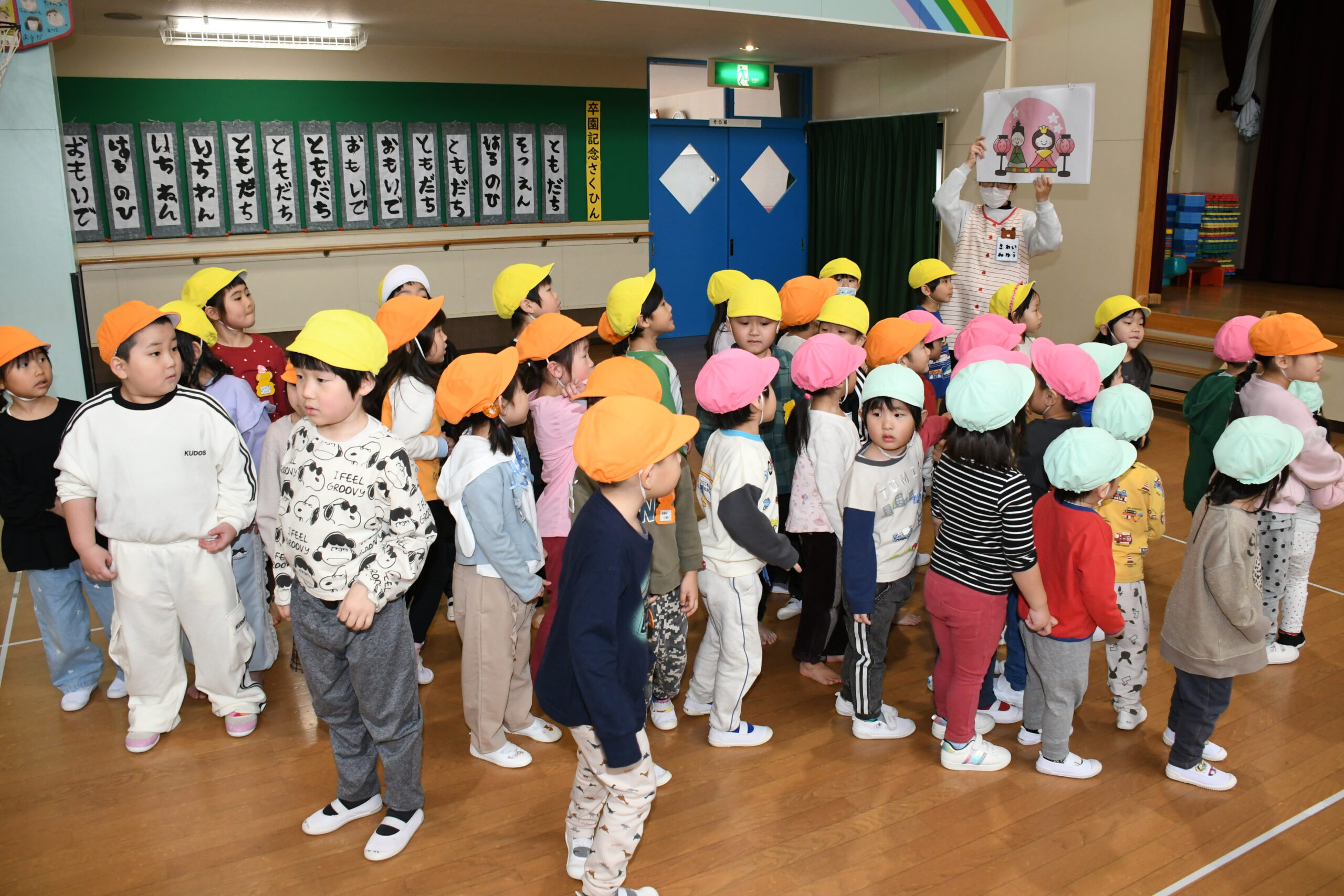 ホールには2歳~5歳のお友達が集まりクリスマス会をしました -