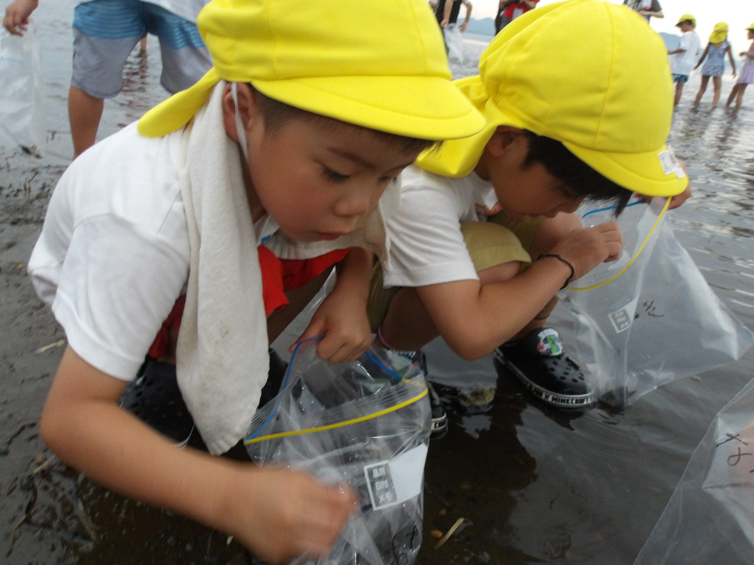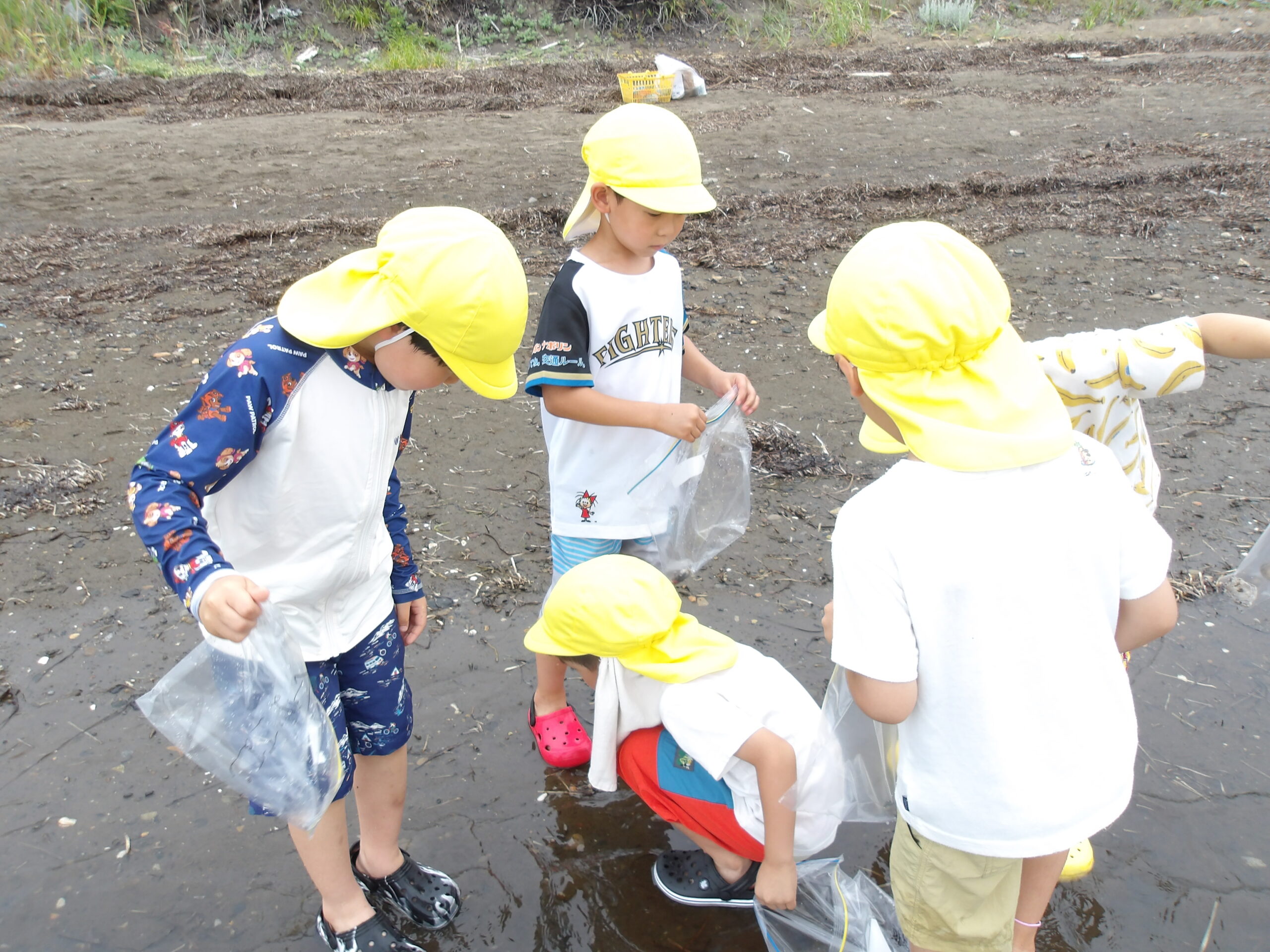 サロマ湖で貝拾いや水遊びなど幼稚園では出来ない体験を大切にしています。