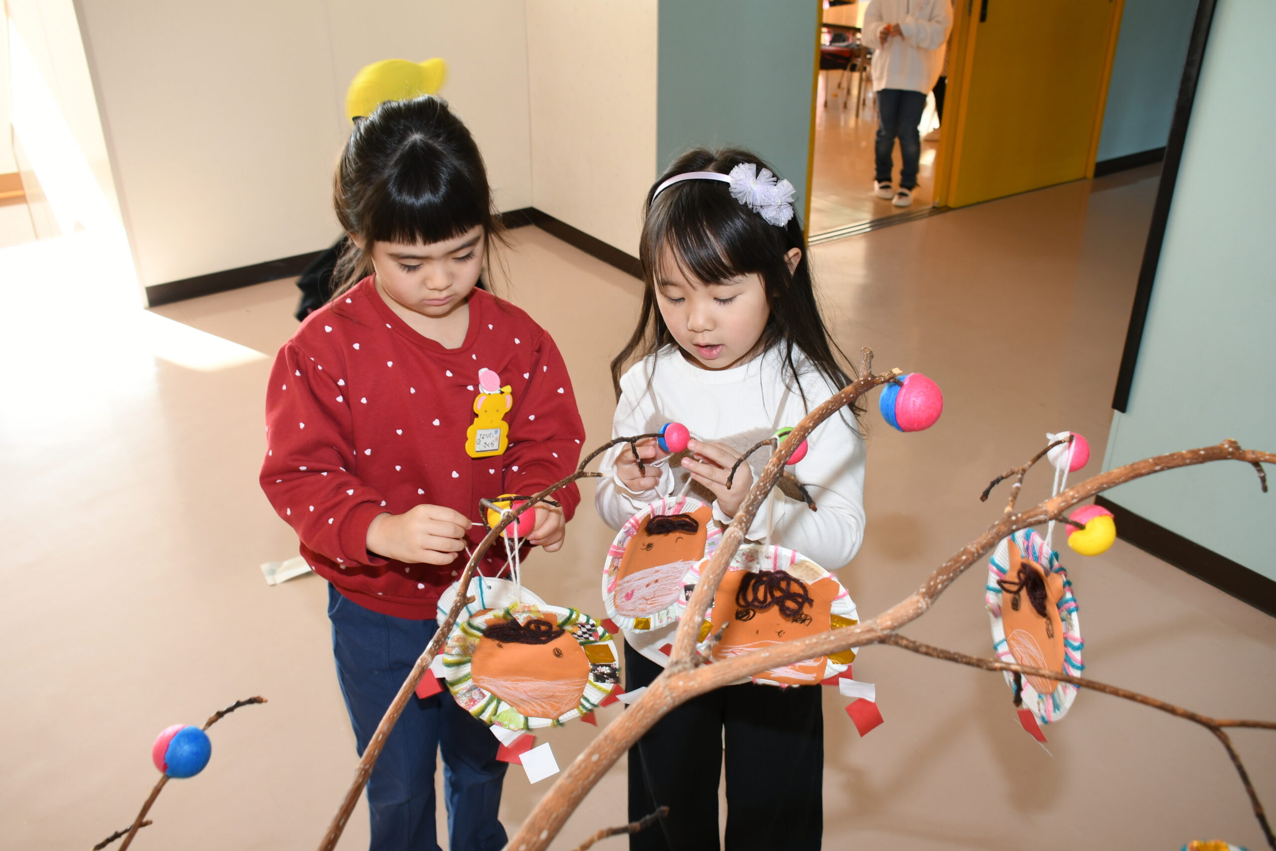 幼稚園の図書コーナーに飾られ一足先にお正月の雰囲気になりました。