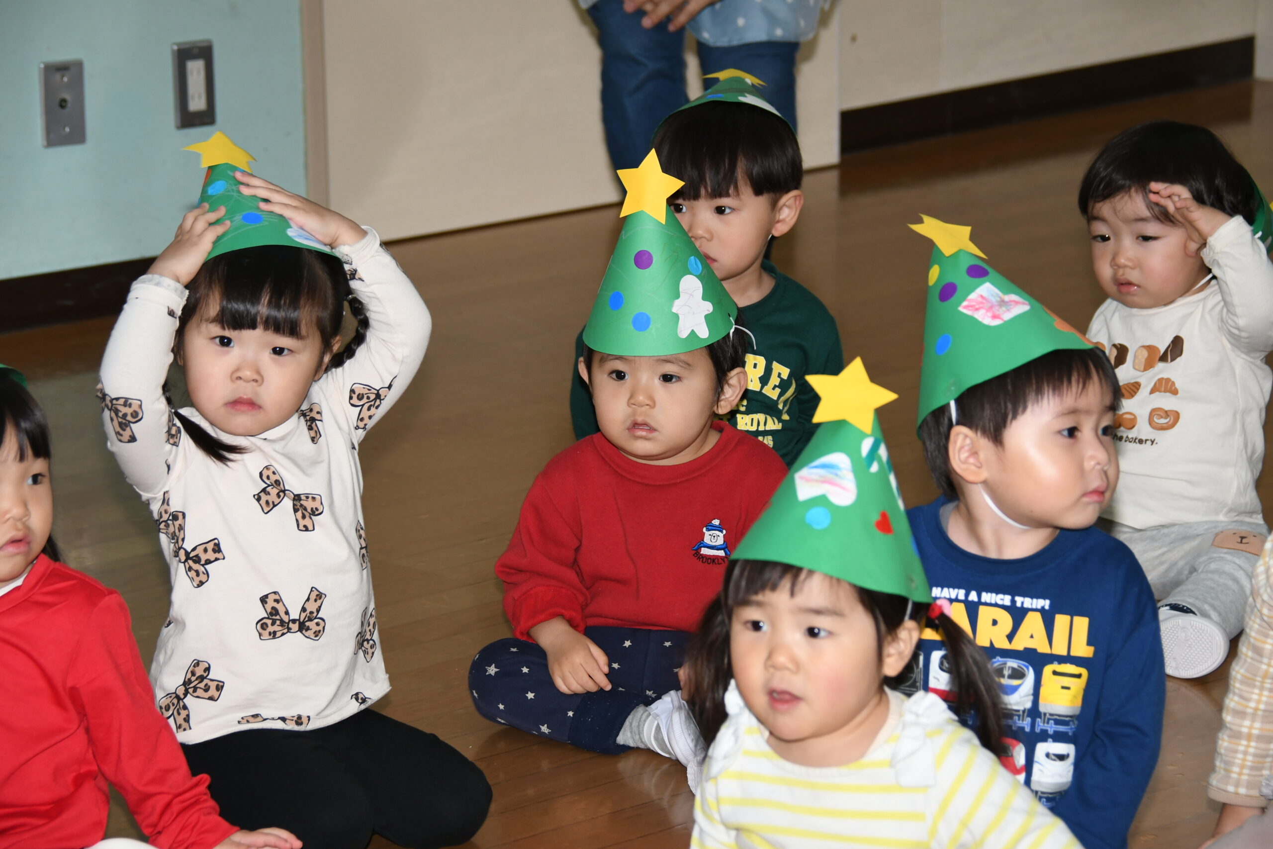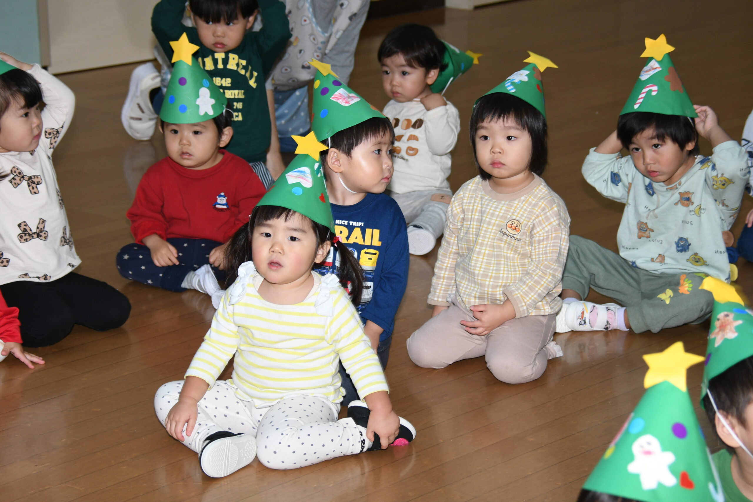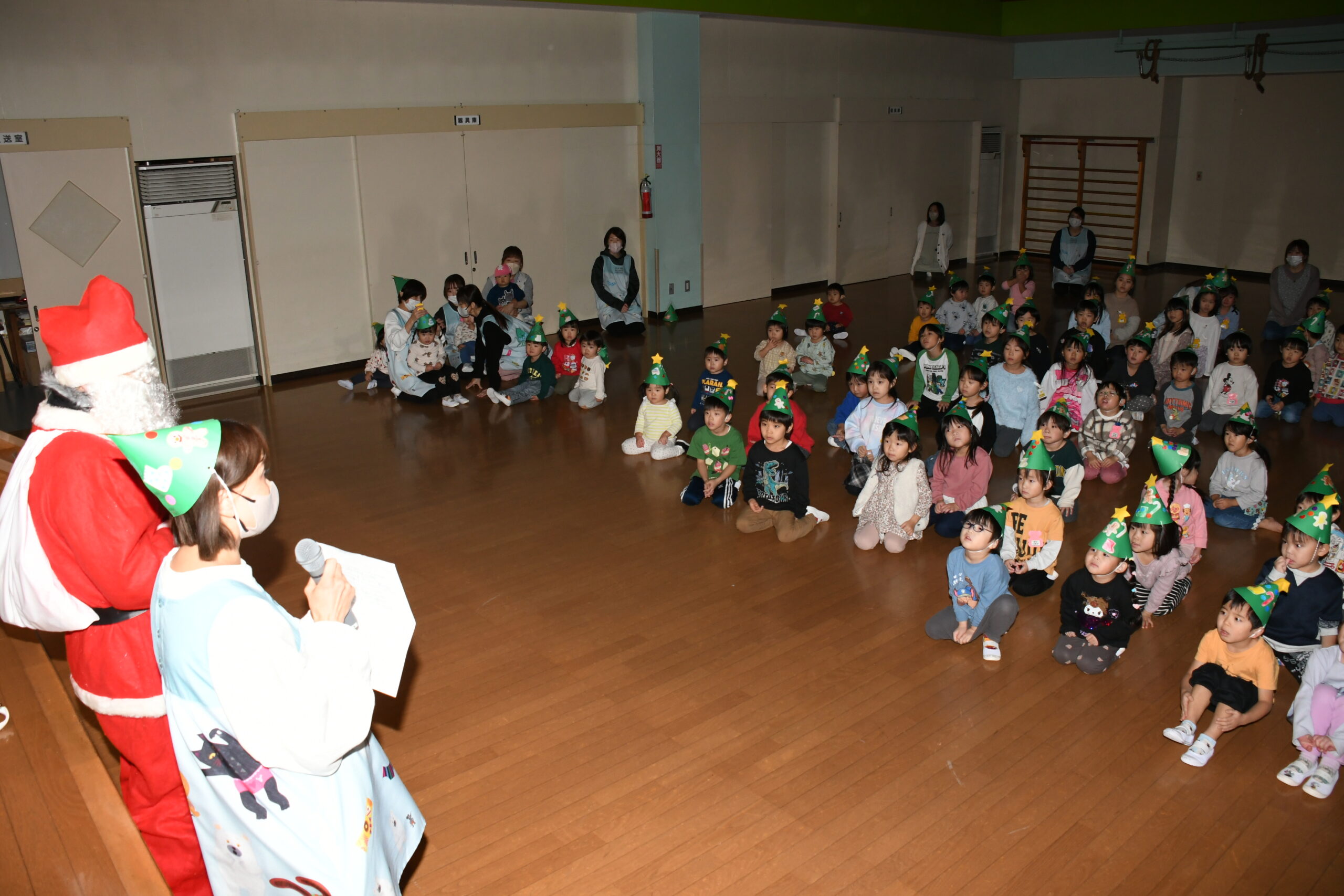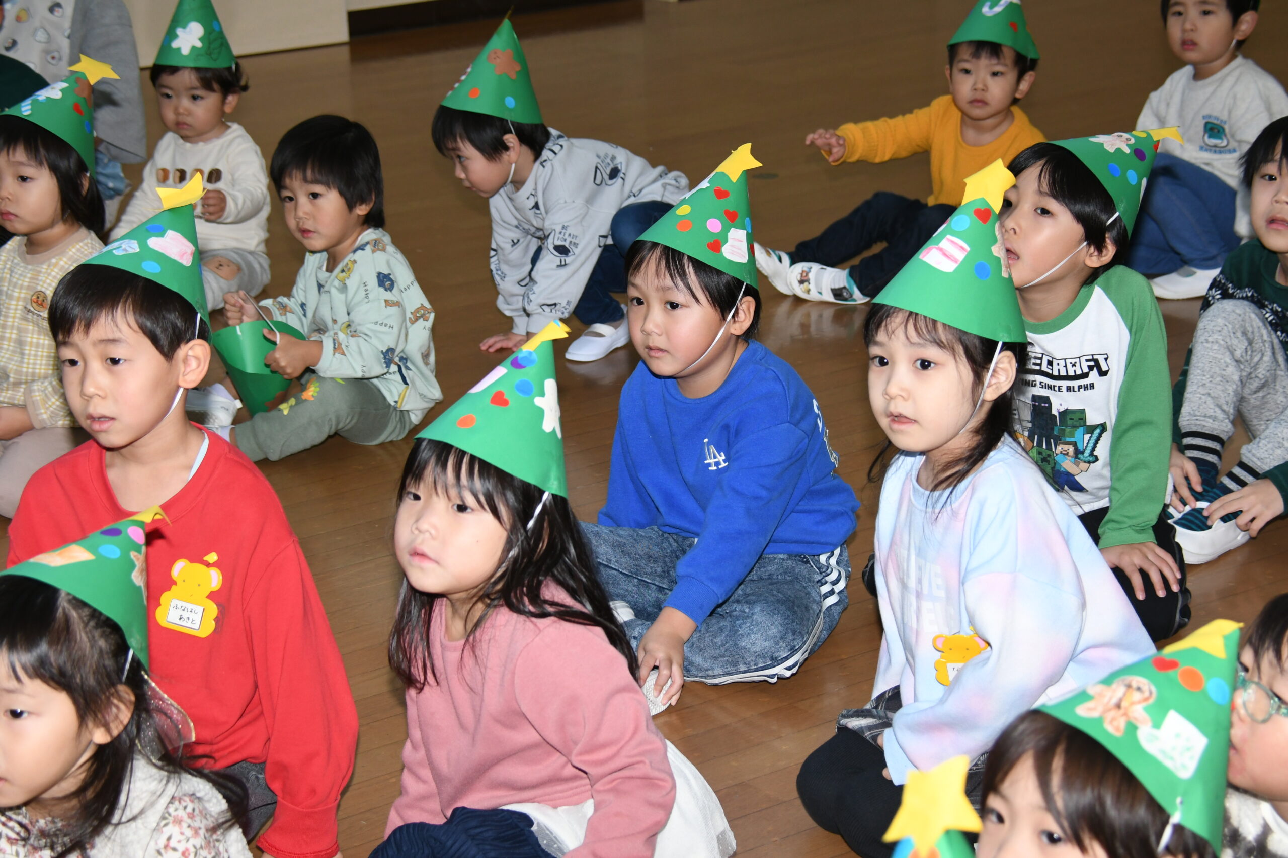 ホールには2歳~5歳のお友達が集まりクリスマス会をしました -