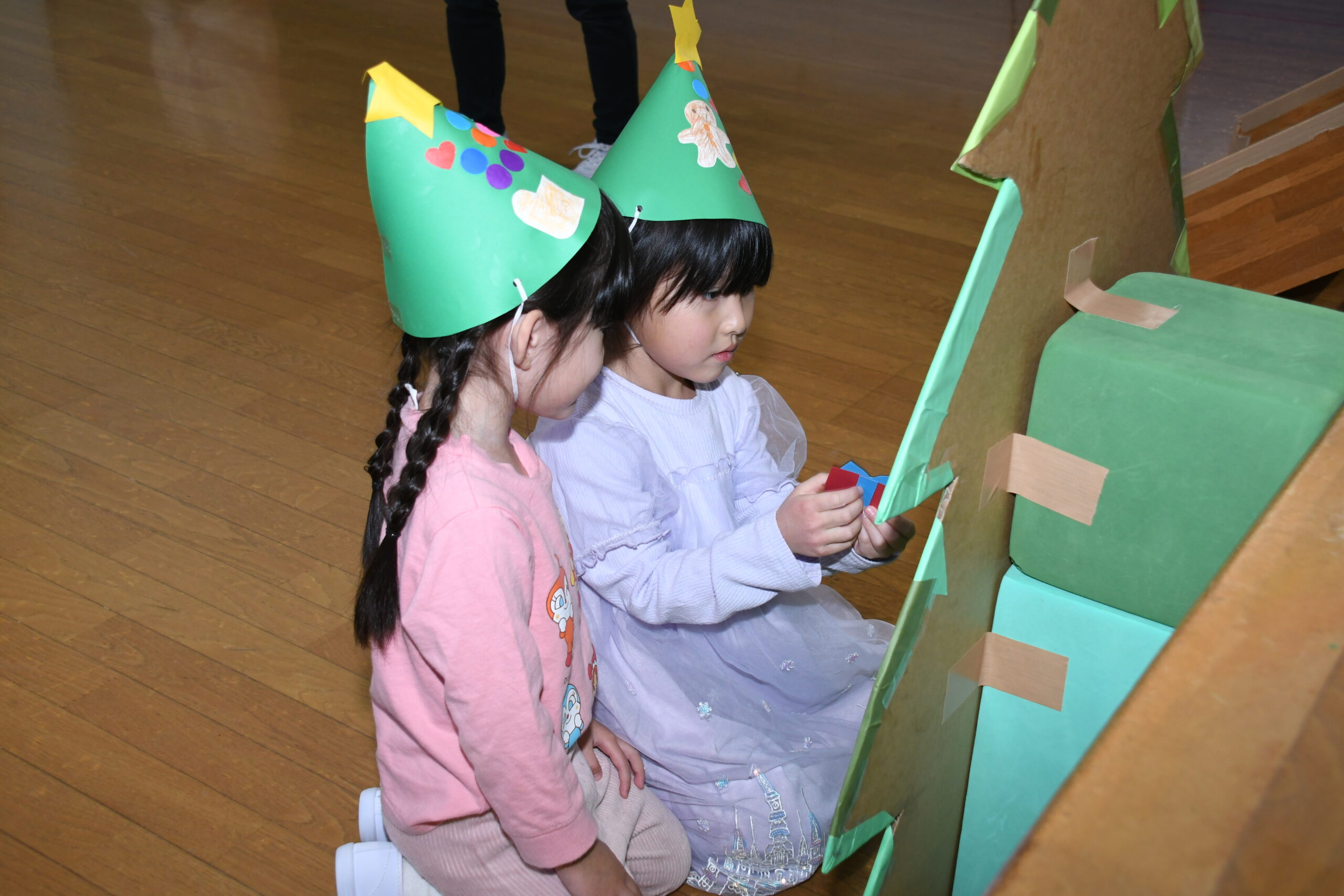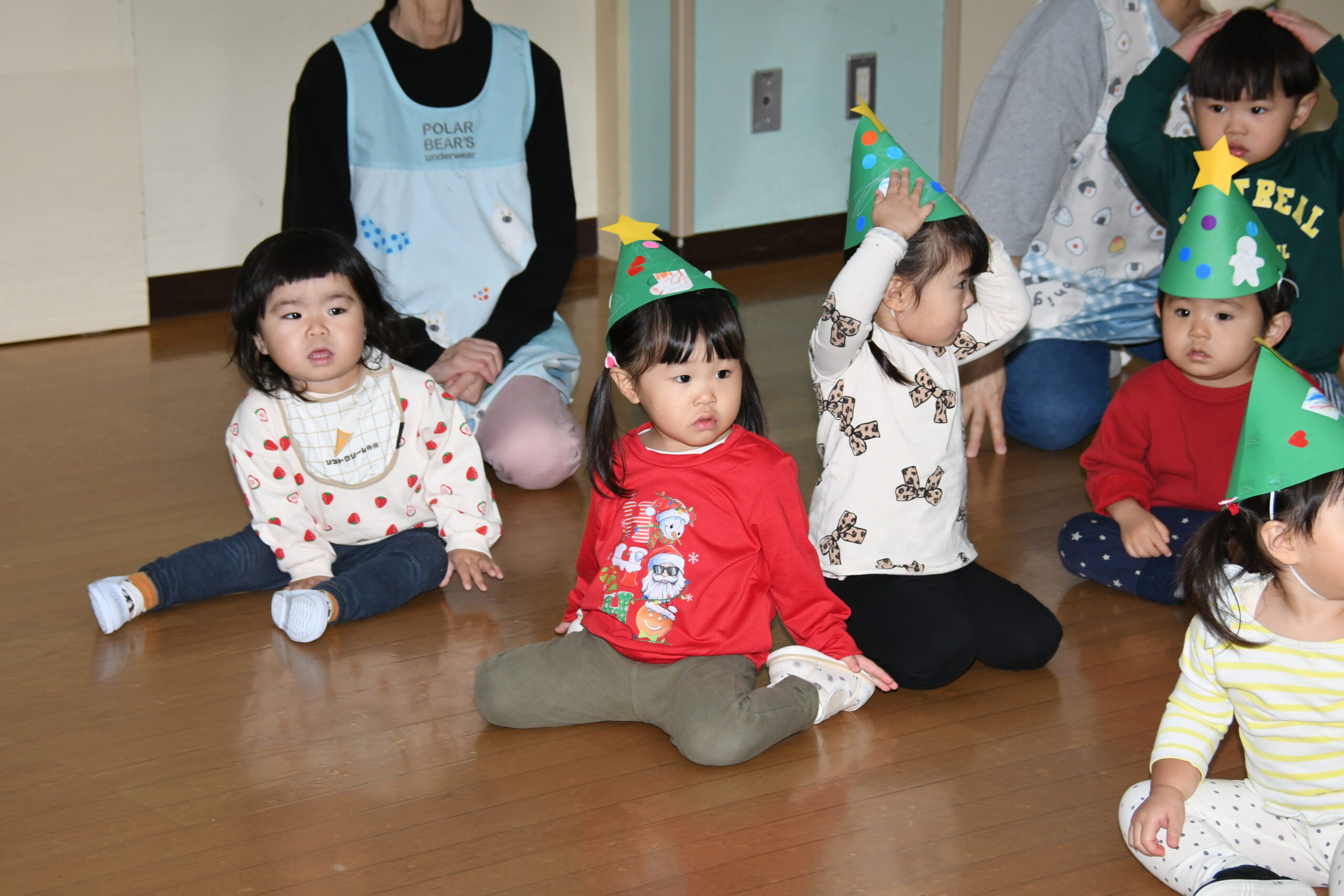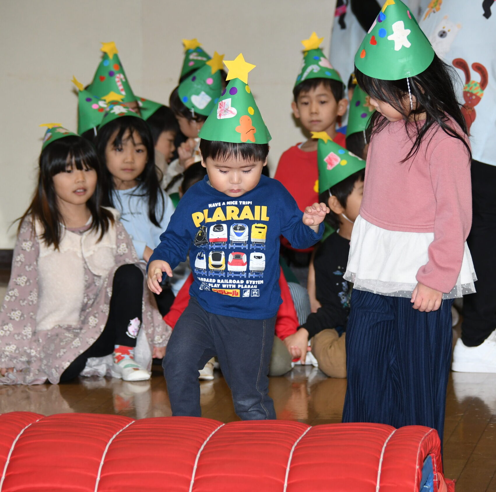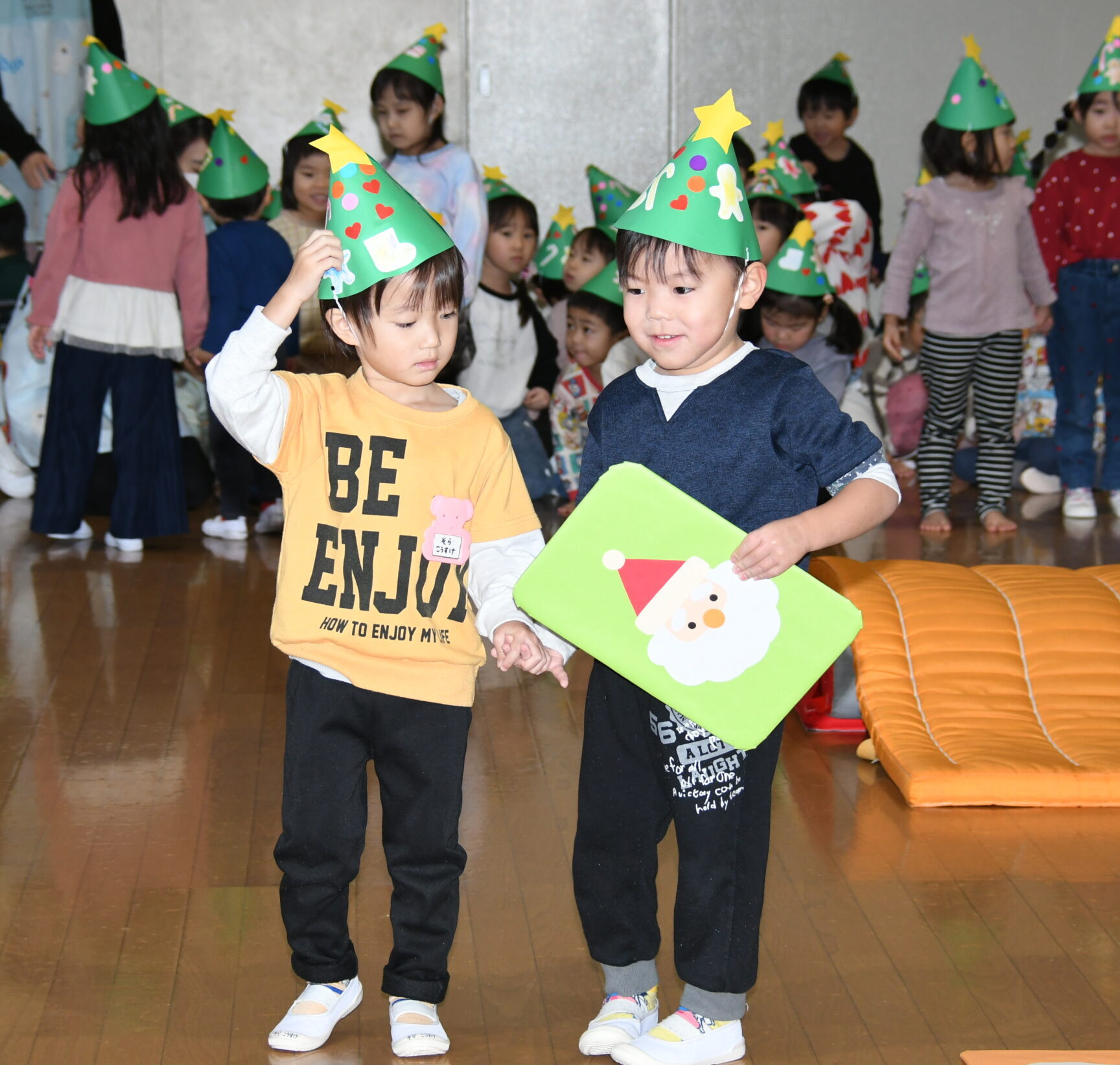 ホールには2歳~5歳のお友達が集まりクリスマス会をしました -