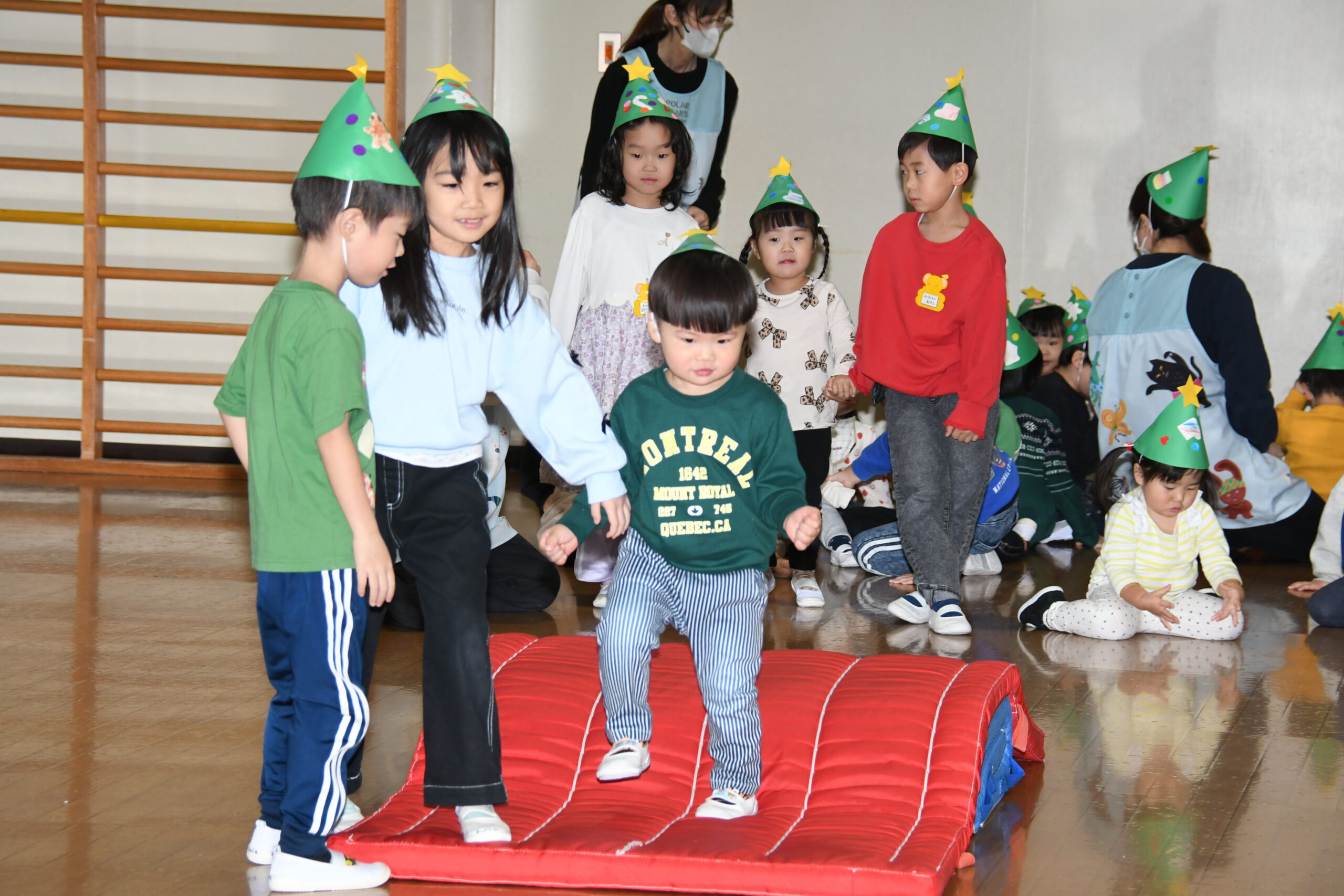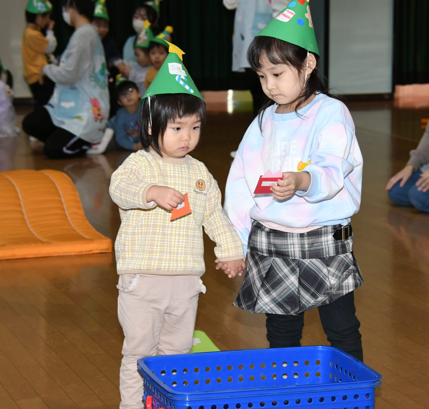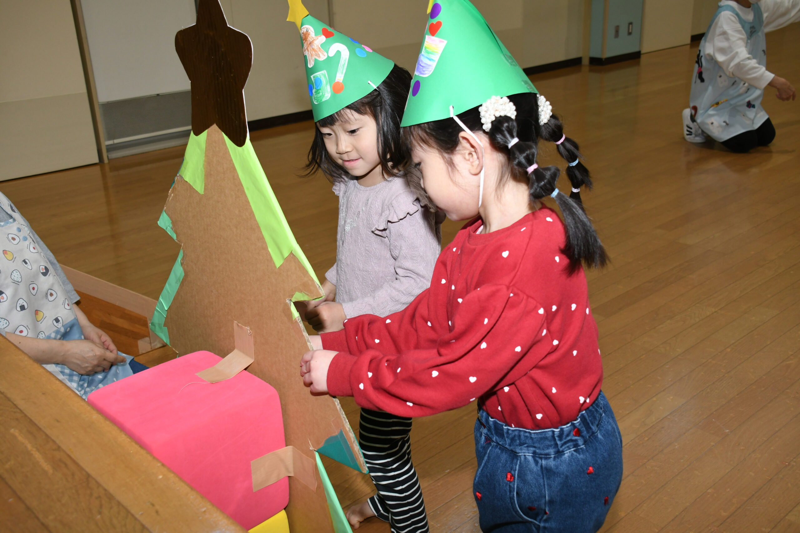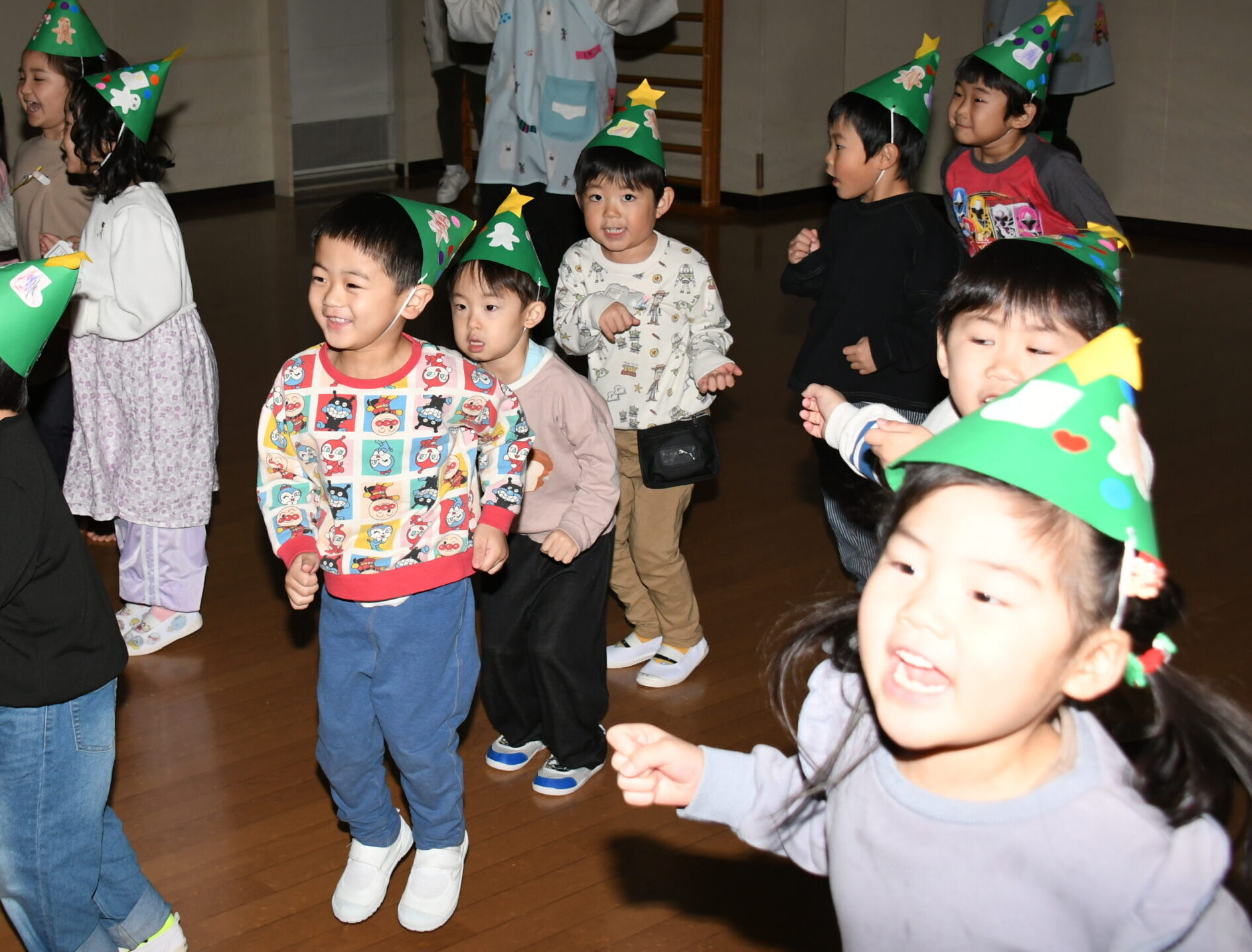 ホールには2歳~5歳のお友達が集まりクリスマス会をしました -