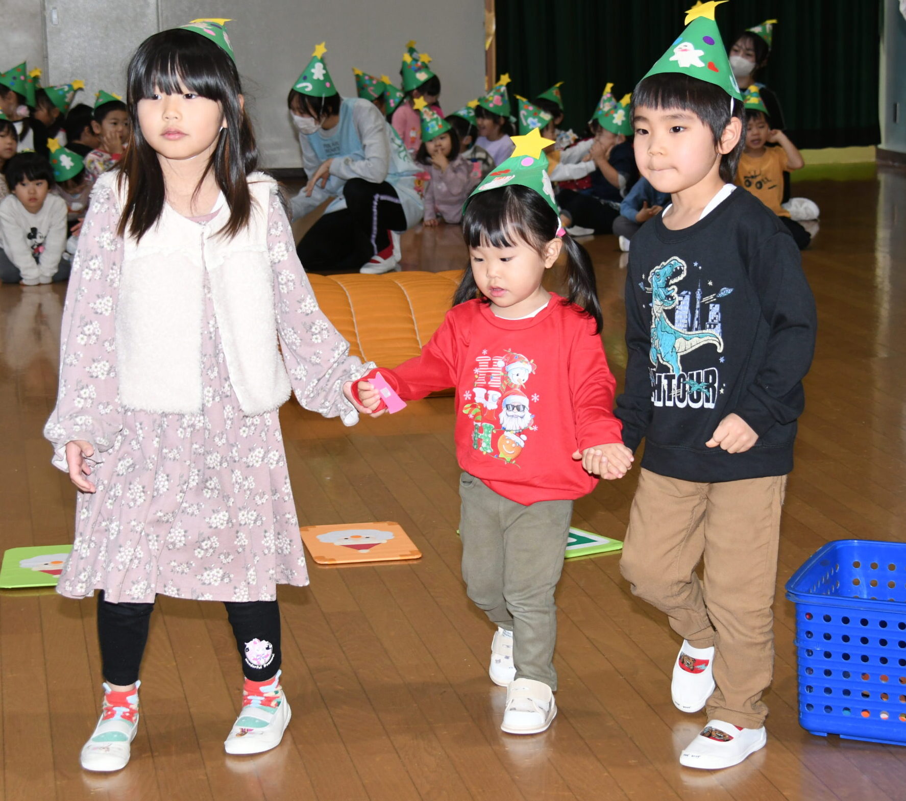ゲームの後「あわてんぼうのサンタクロース」を踊り楽しみました -
