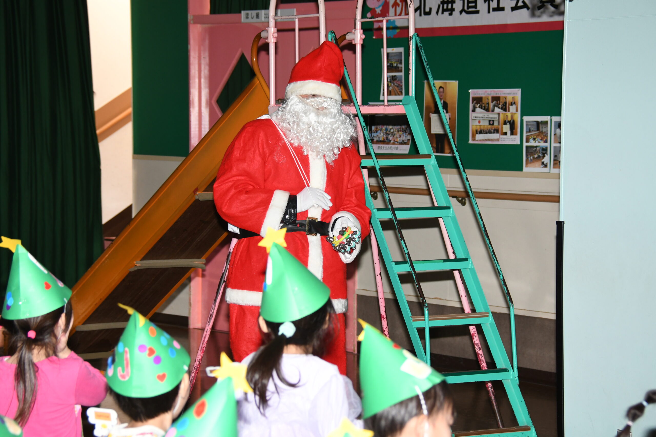 歌の途中で鈴を鳴らしてサンタクロースが来ました びっくり!ドキドキのお友達もいました -
