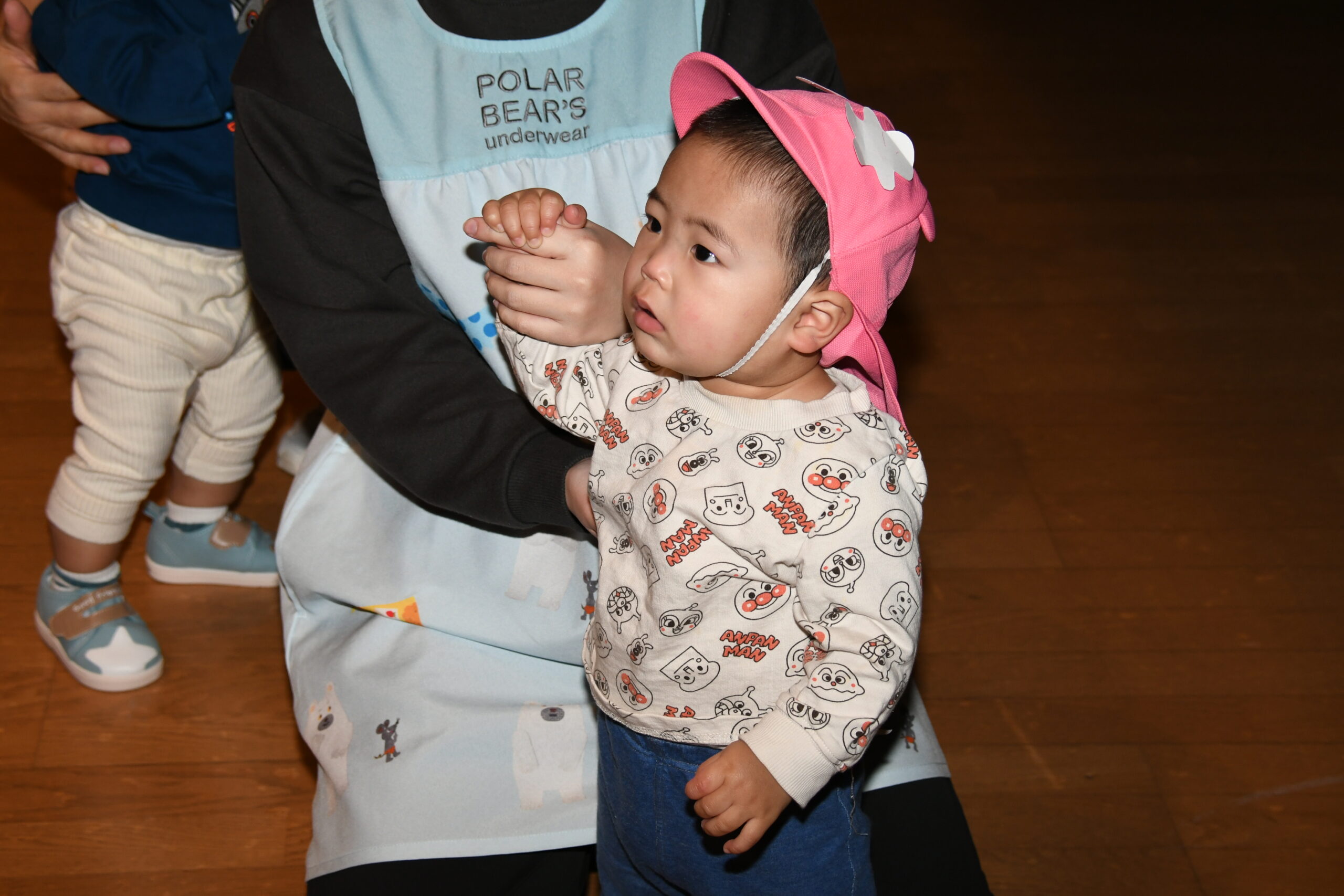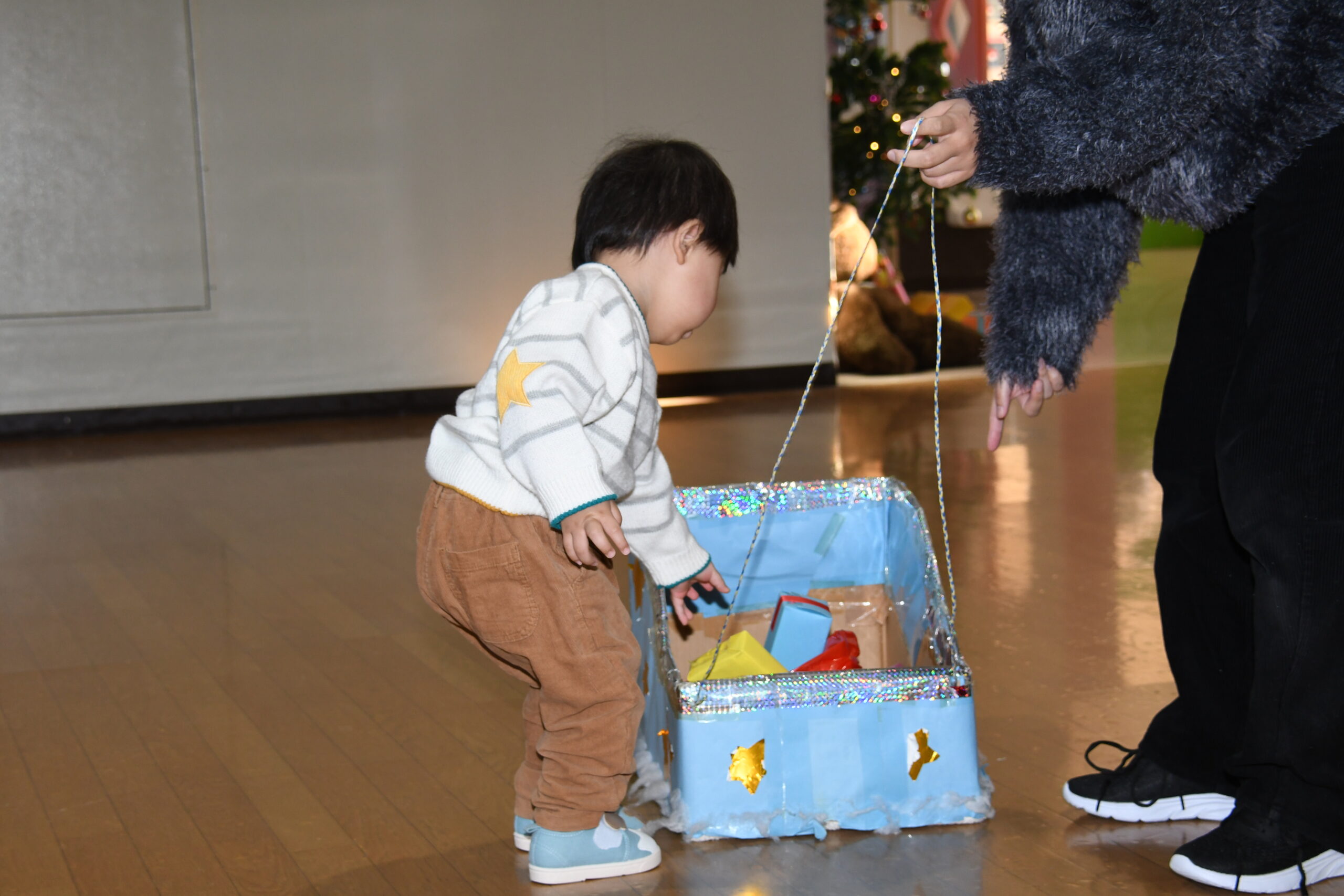 「きれー」と喜ぶ2歳のお友達。いつもと違う雰囲気に表情が硬かったのがワクワクに変わりました。
