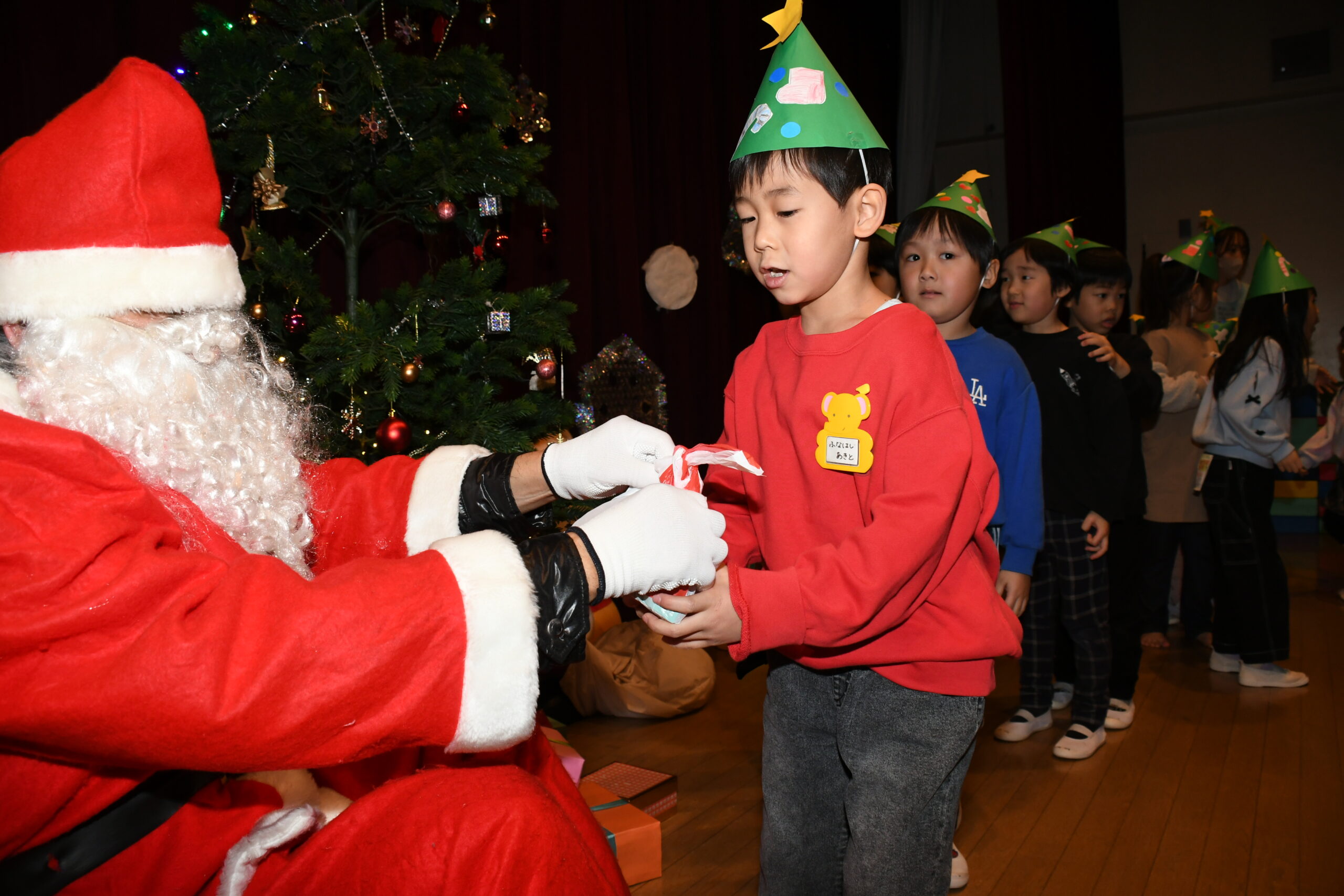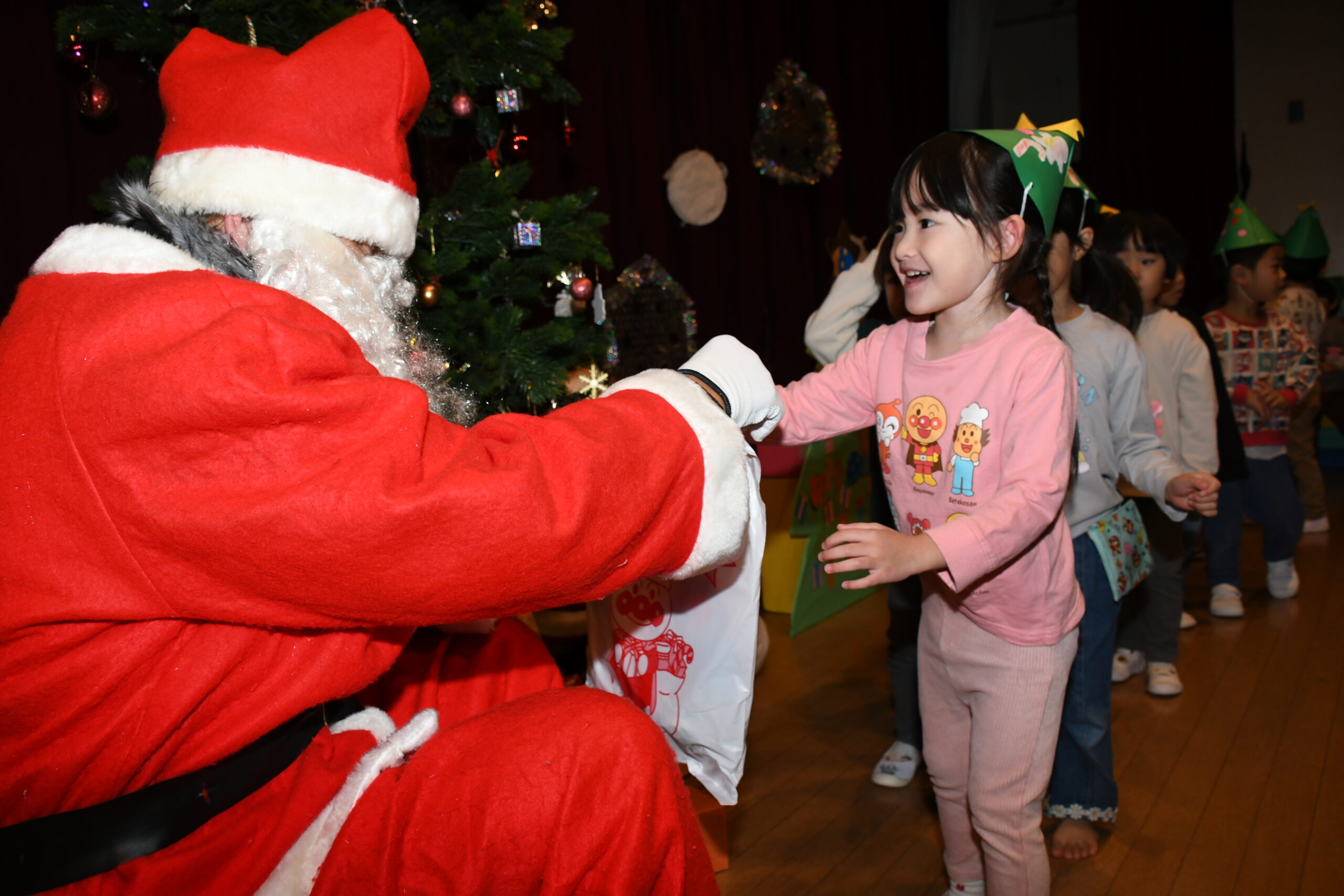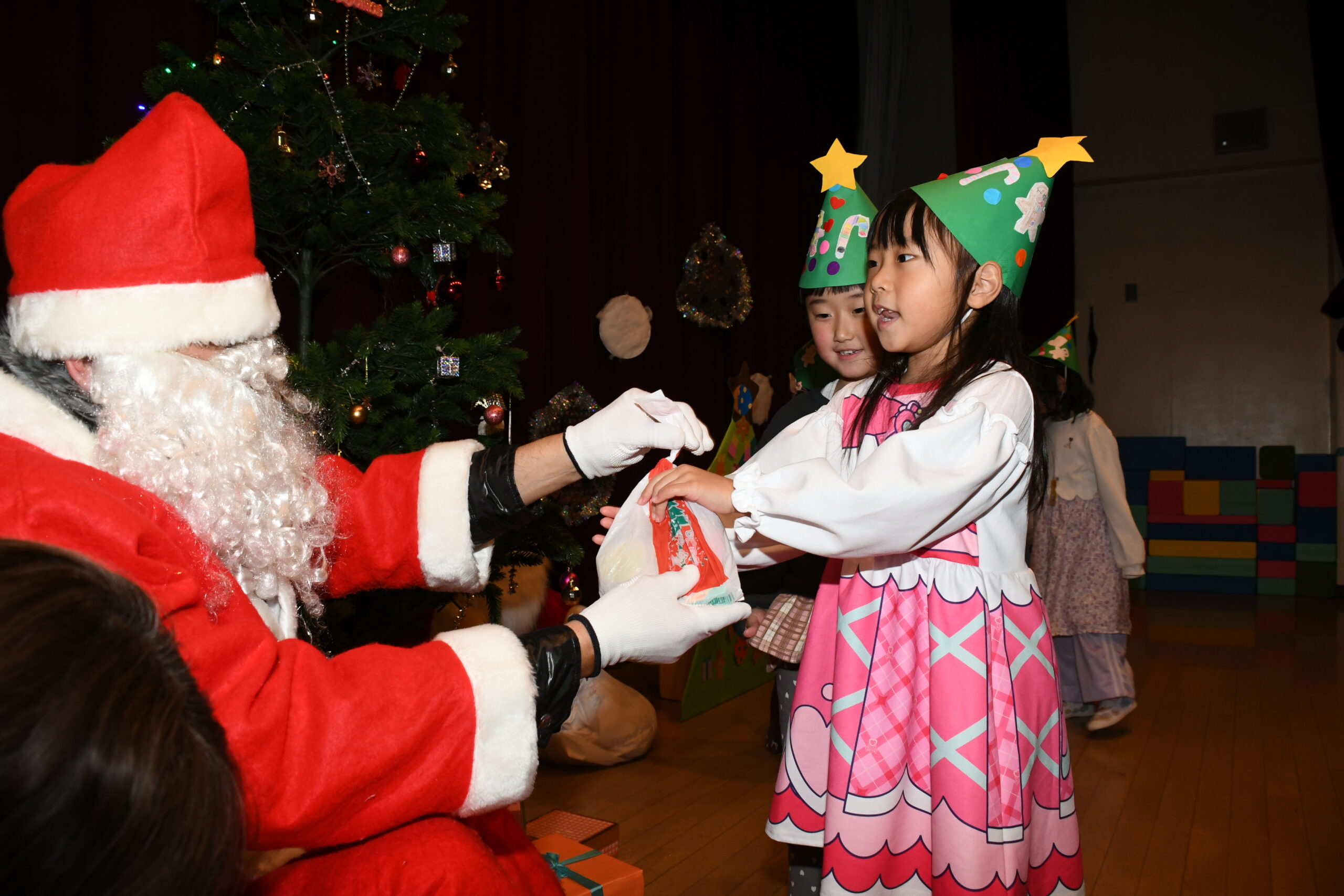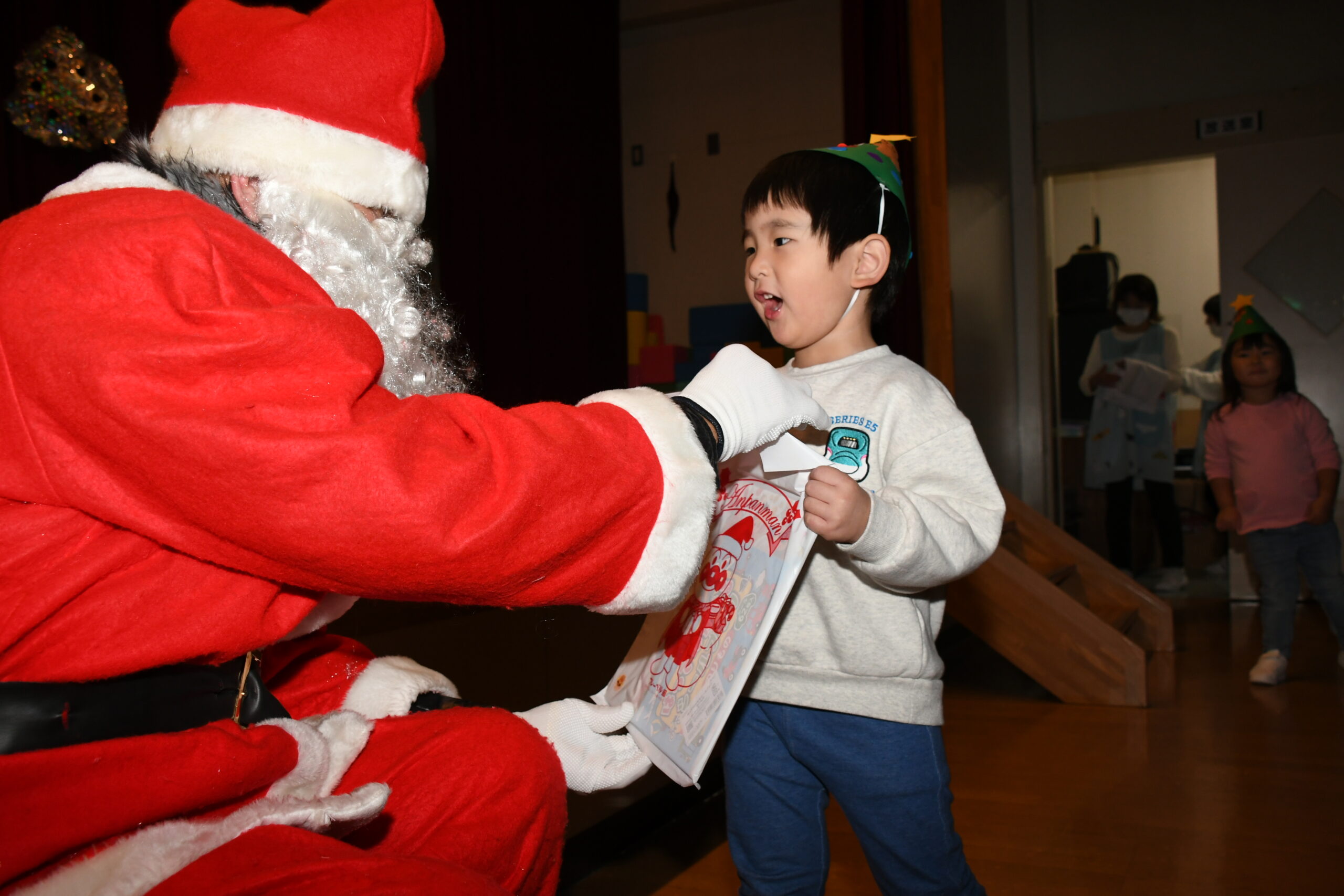 「幼稚園に来るサンタさんは本物なの?」と疑問の5歳さんもサンタクロースの登場に「ウワー」と喜びの声が上がりました。
