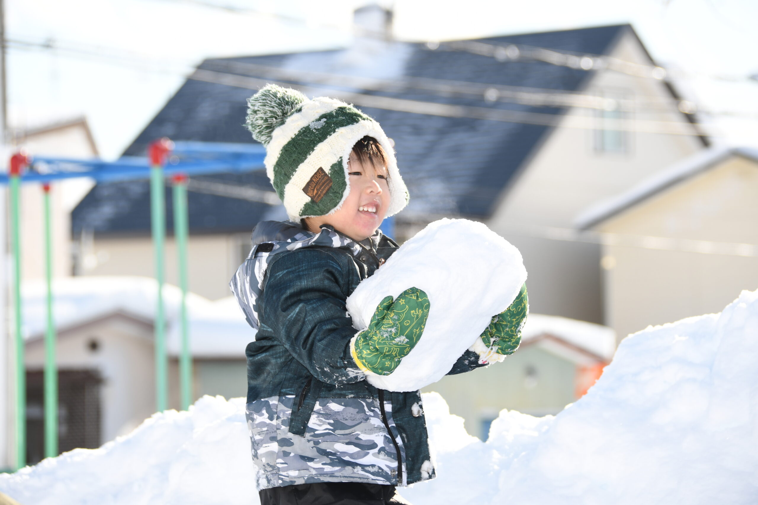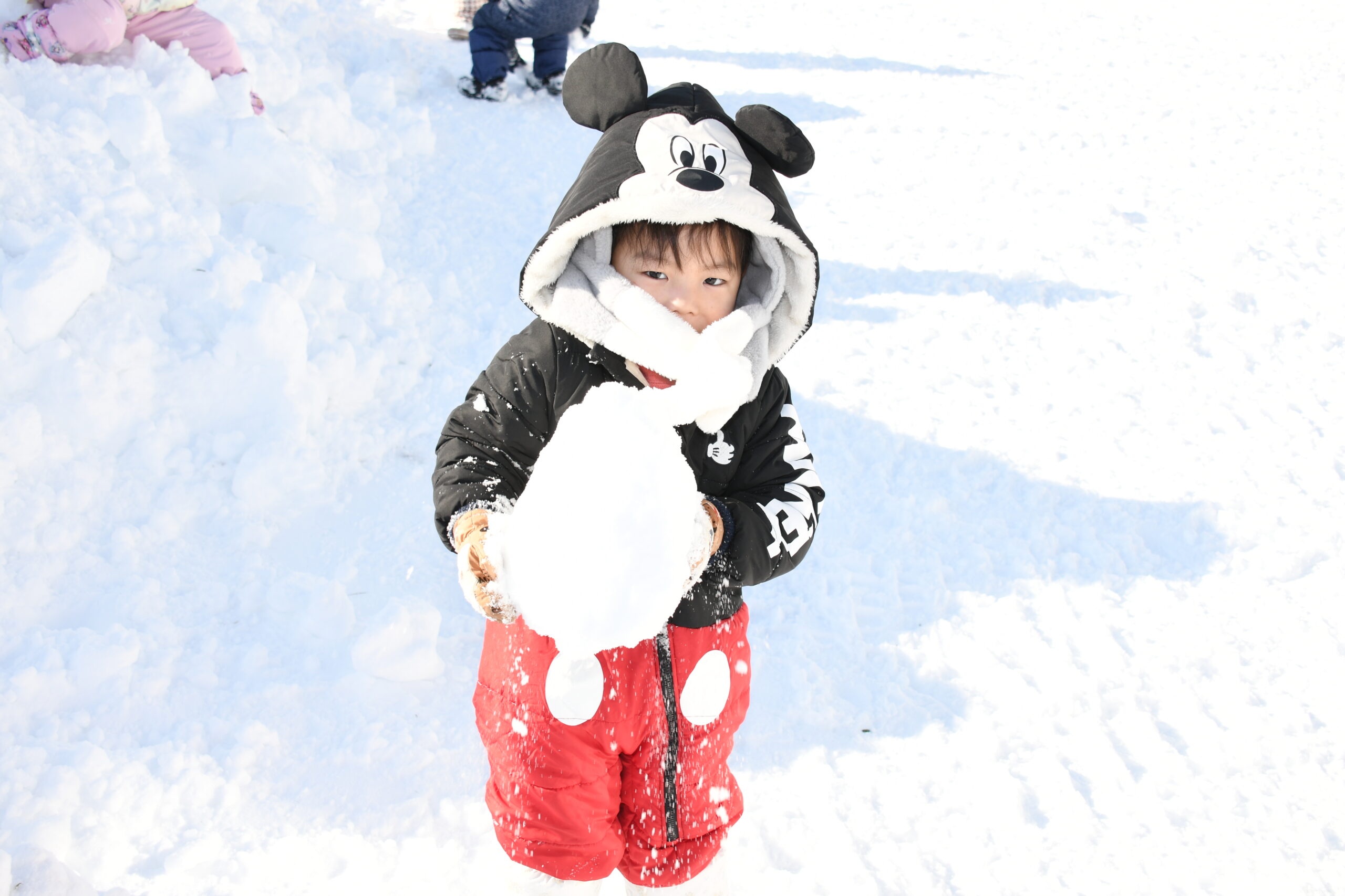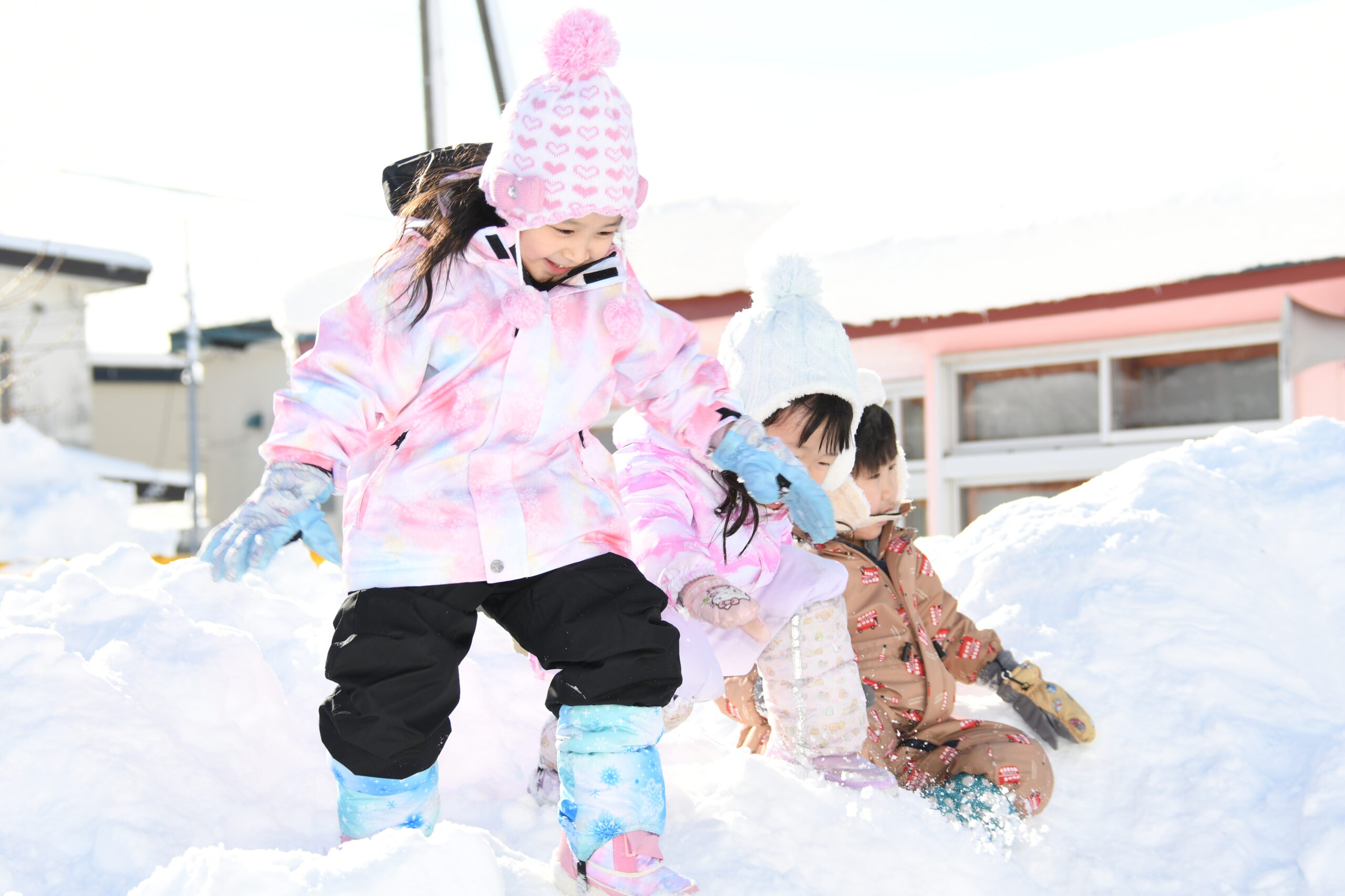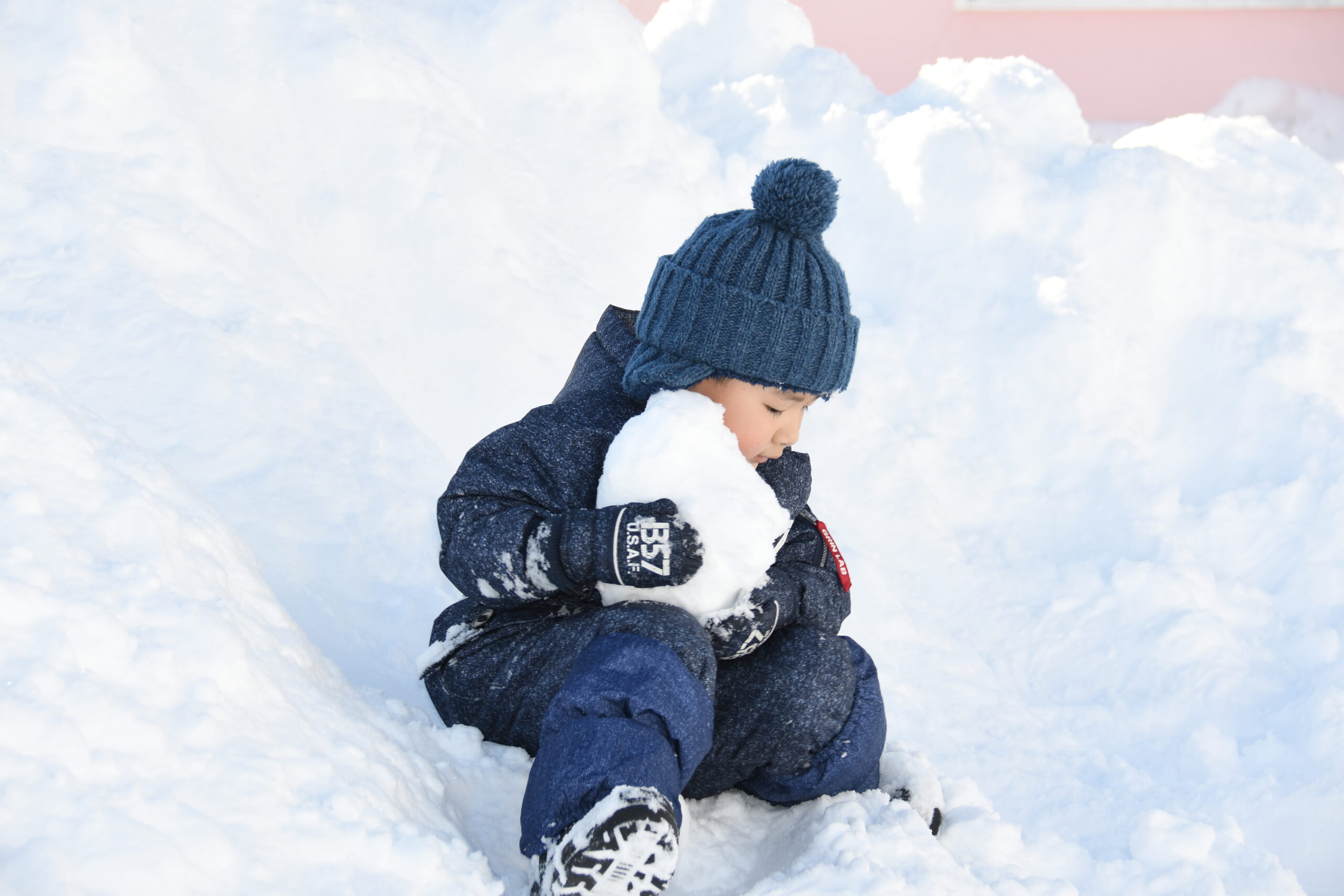時折深く積もった雪に「足が抜けなくなっちゃった~」と困ったように話しながらも、雪だるま作り、かまくら作り、トンネル作り、雪合戦…ずっと待ちわびていた雪とのふれあいに笑顔と楽し気な声が晴天の下に響いていました。