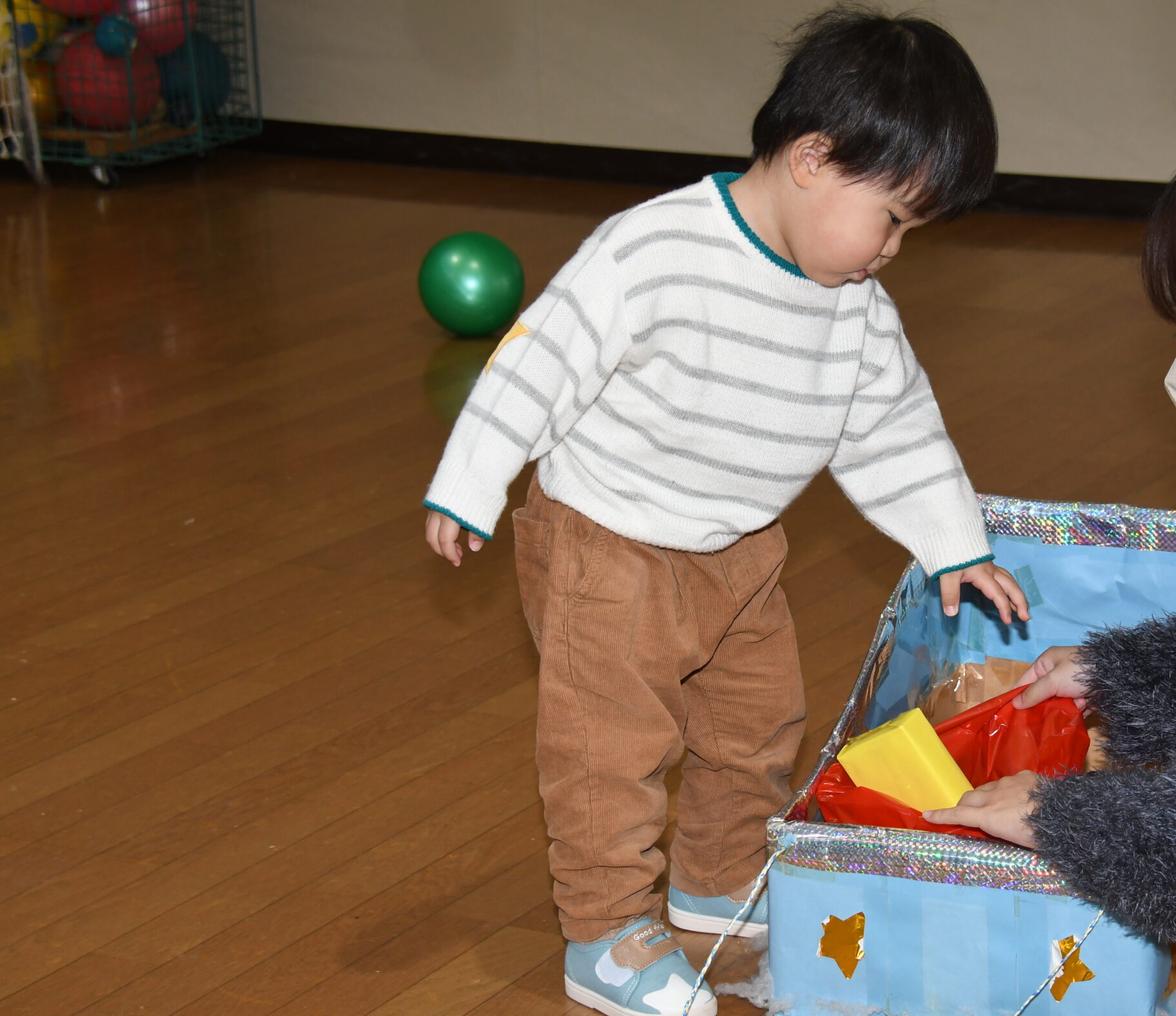 「サンタさんが沢山プレゼントを落としたから拾いに行こうね」