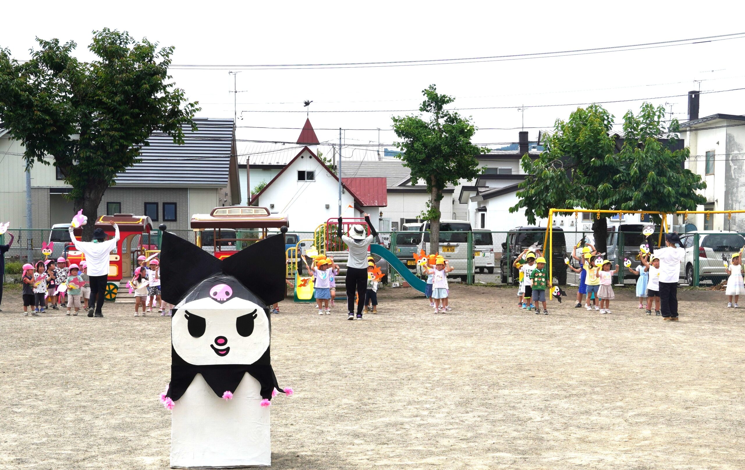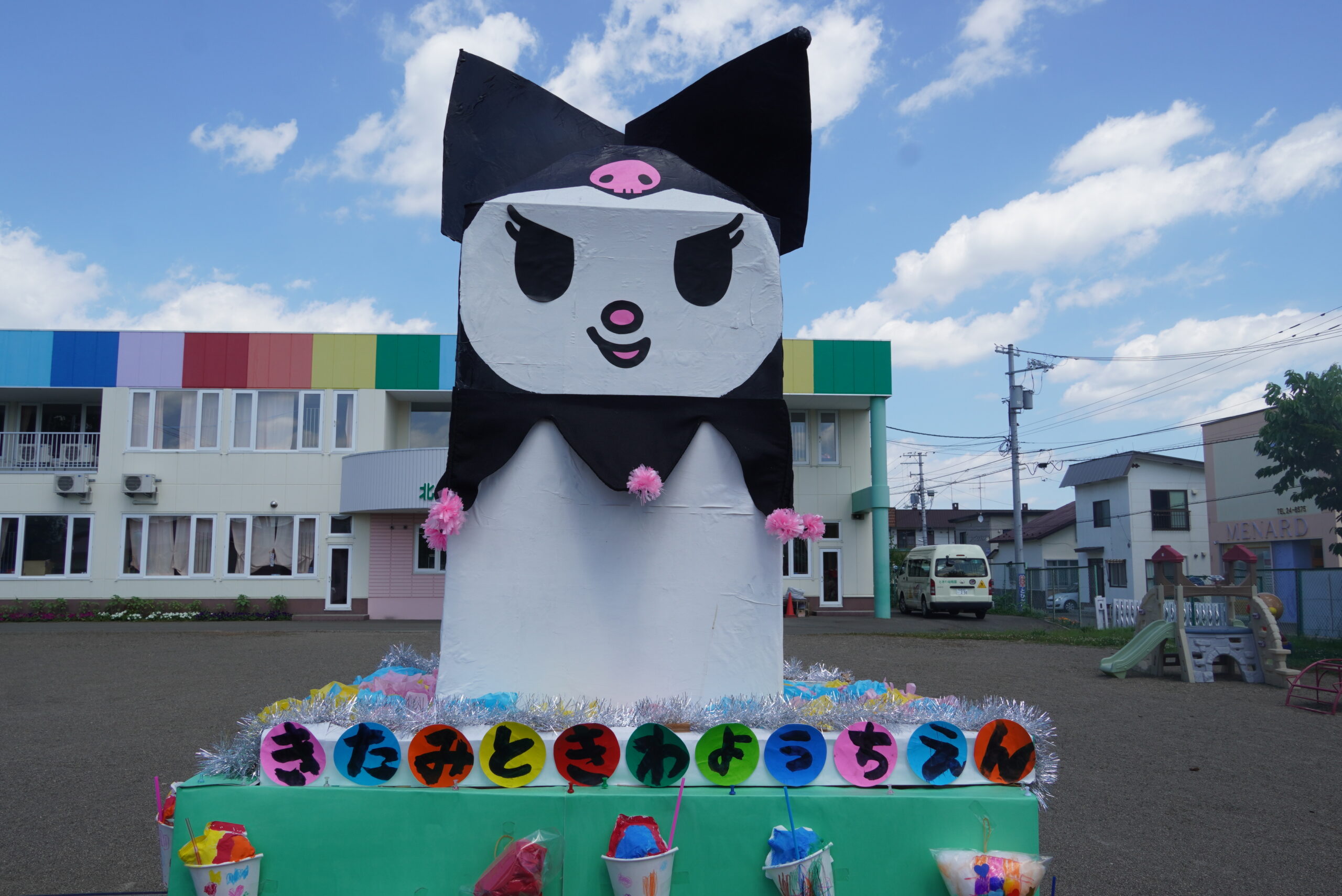 今年の山車は年長ゆめ組が担当しました。サンリオのキャラクターマイメロディのお友達の「クロミちゃん」を段ボールに紙を張り製作しました。ゆめ組が絵の具や、ニスぬりをしてみんなで協力し完成させました。