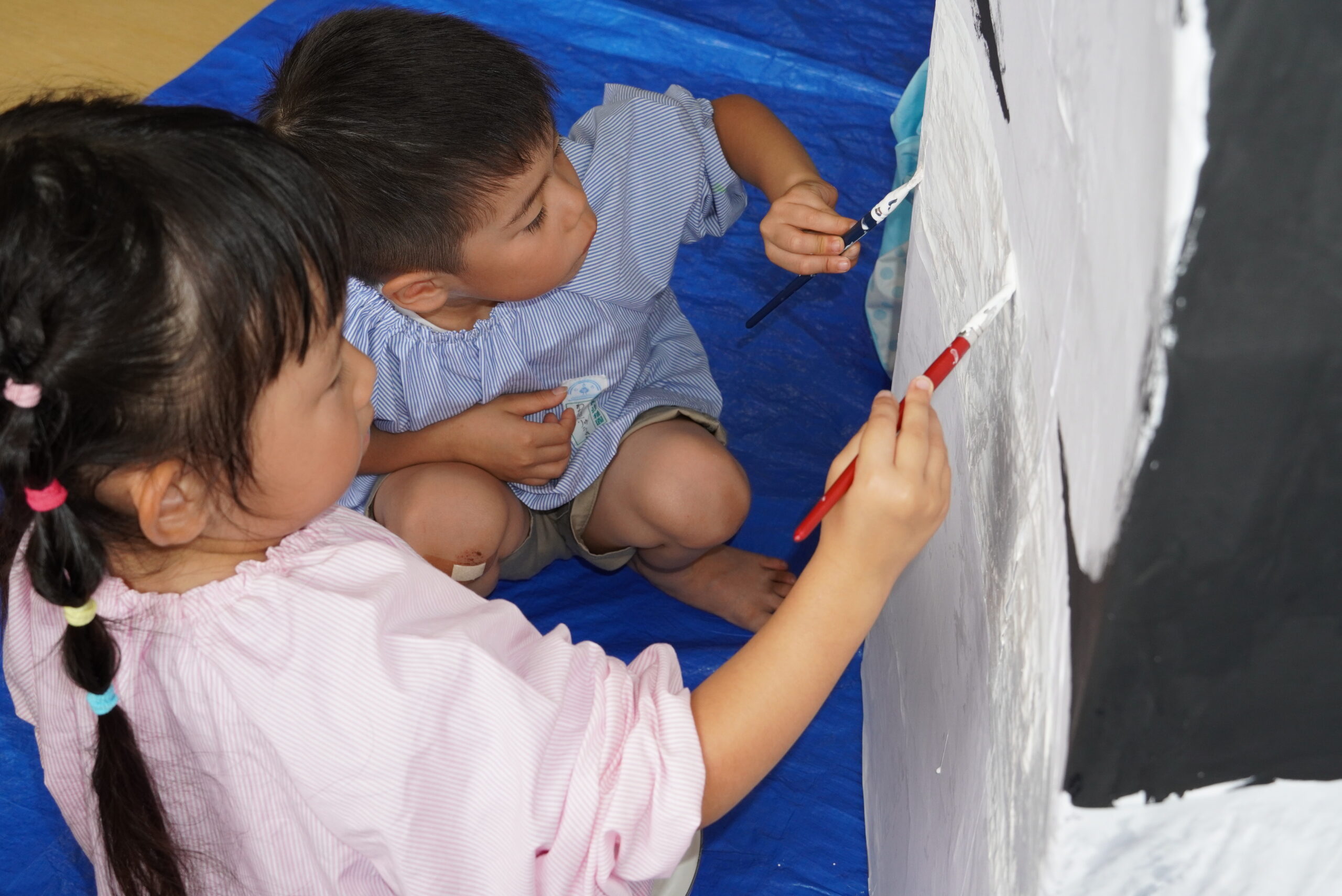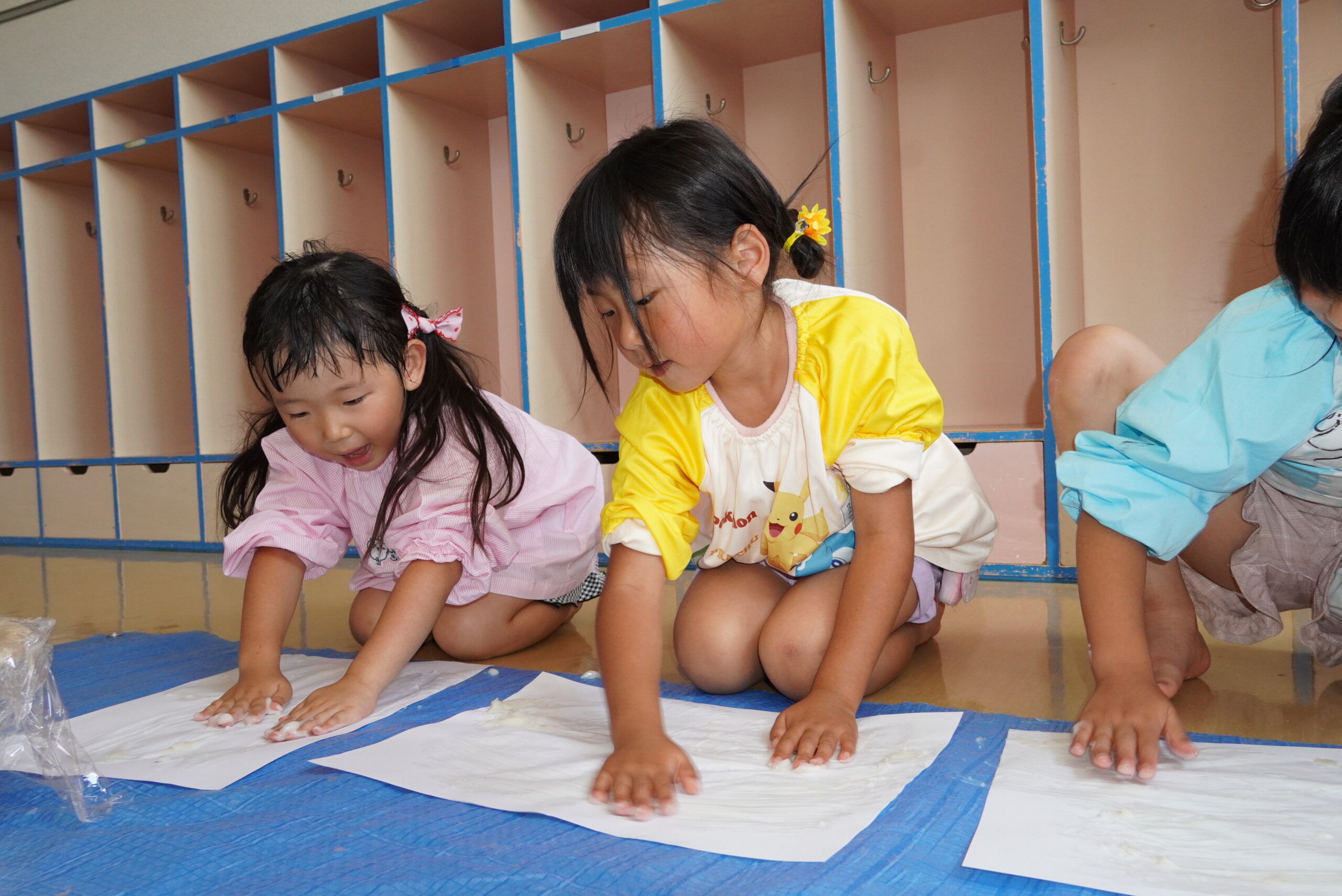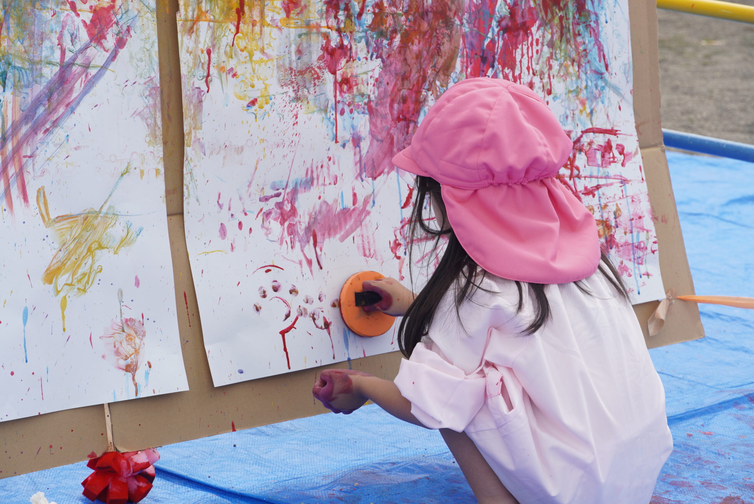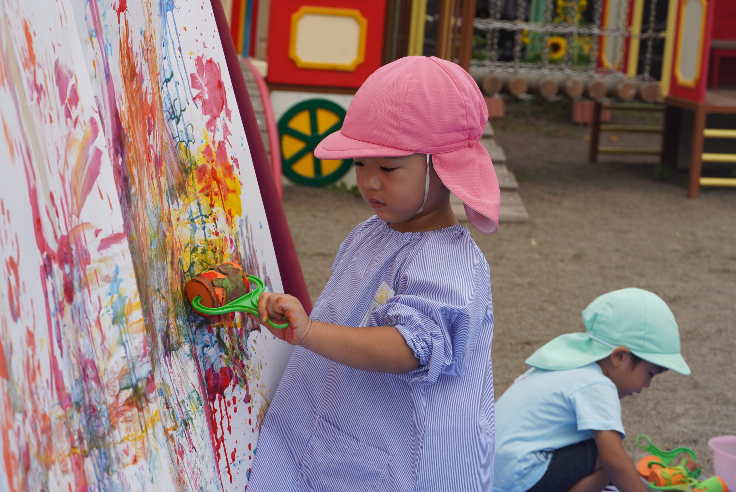 2歳~5歳のお友達が園庭でえのぐ遊びを楽しみました。