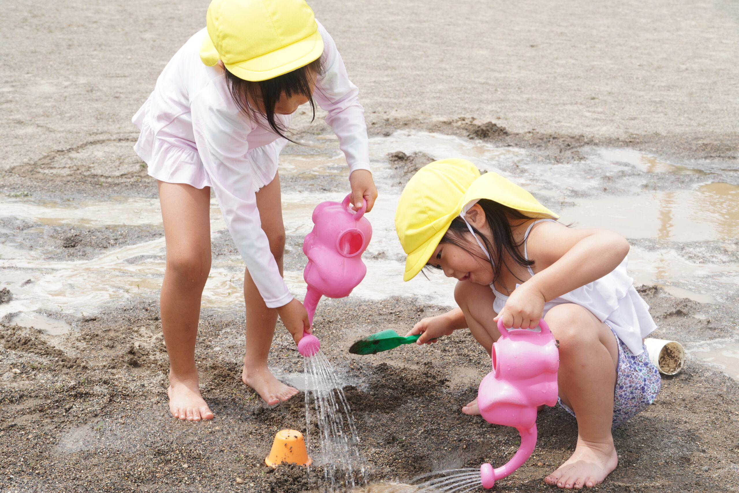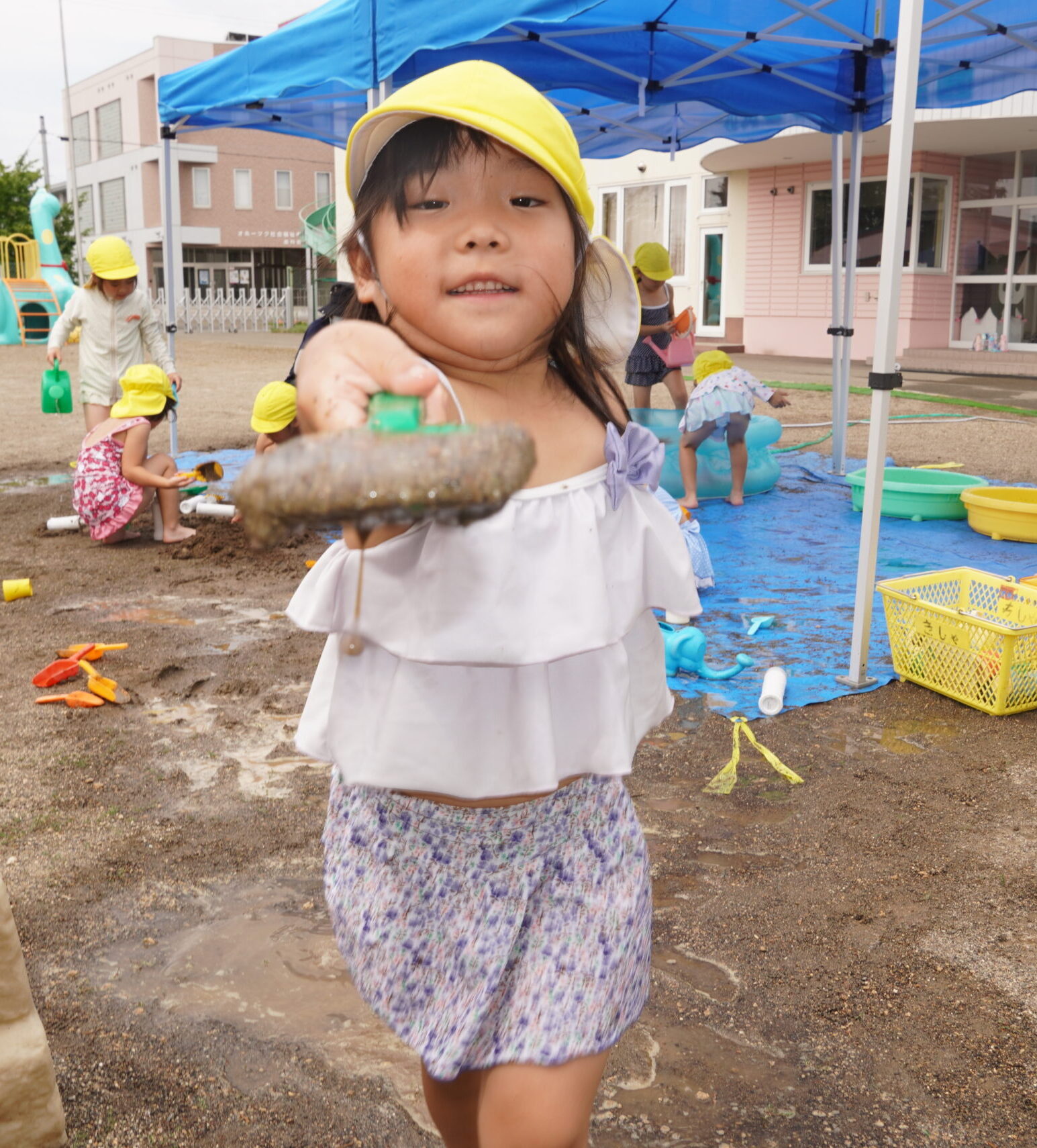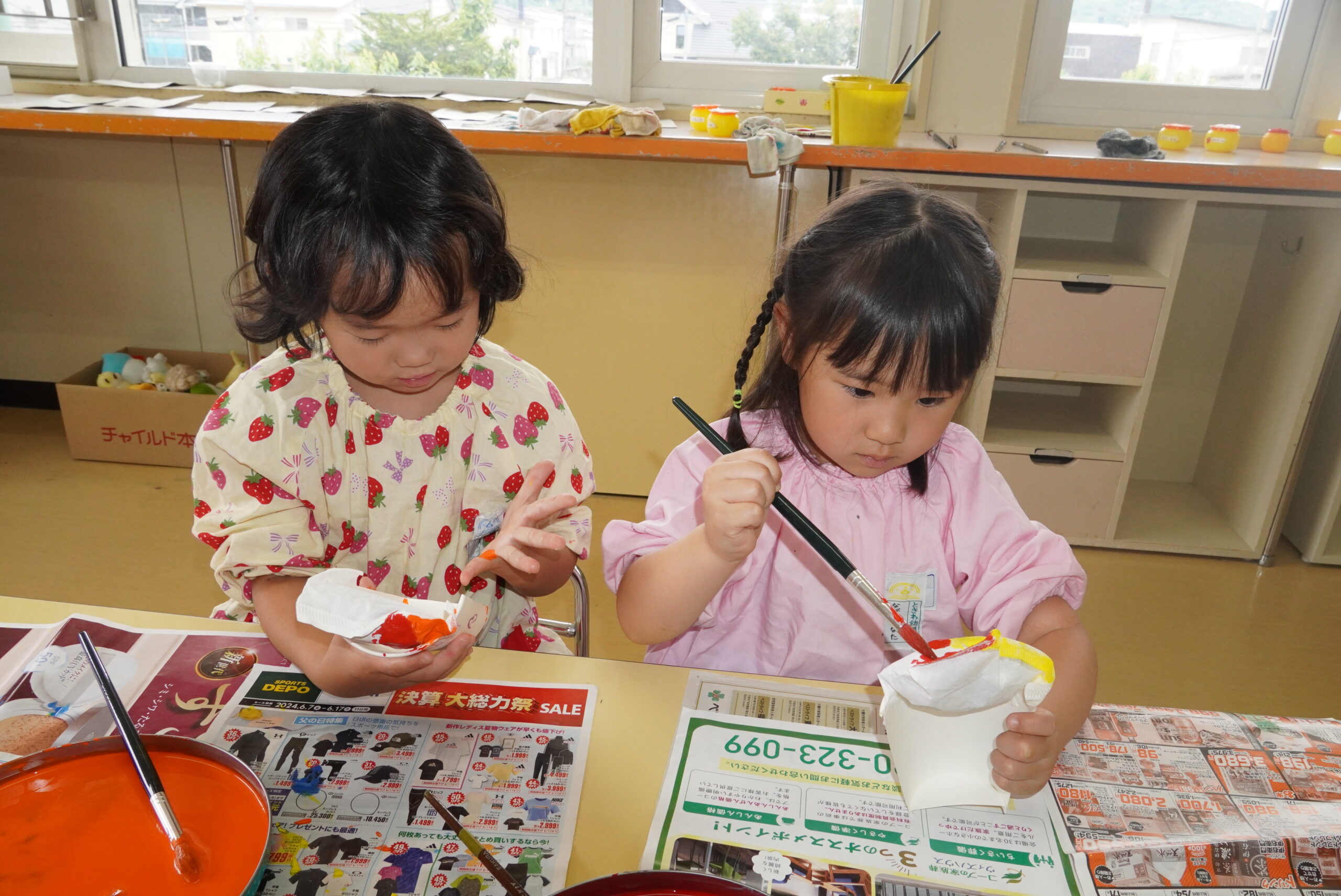 2歳~5歳のお友達が園庭でえのぐ遊びを楽しみました。