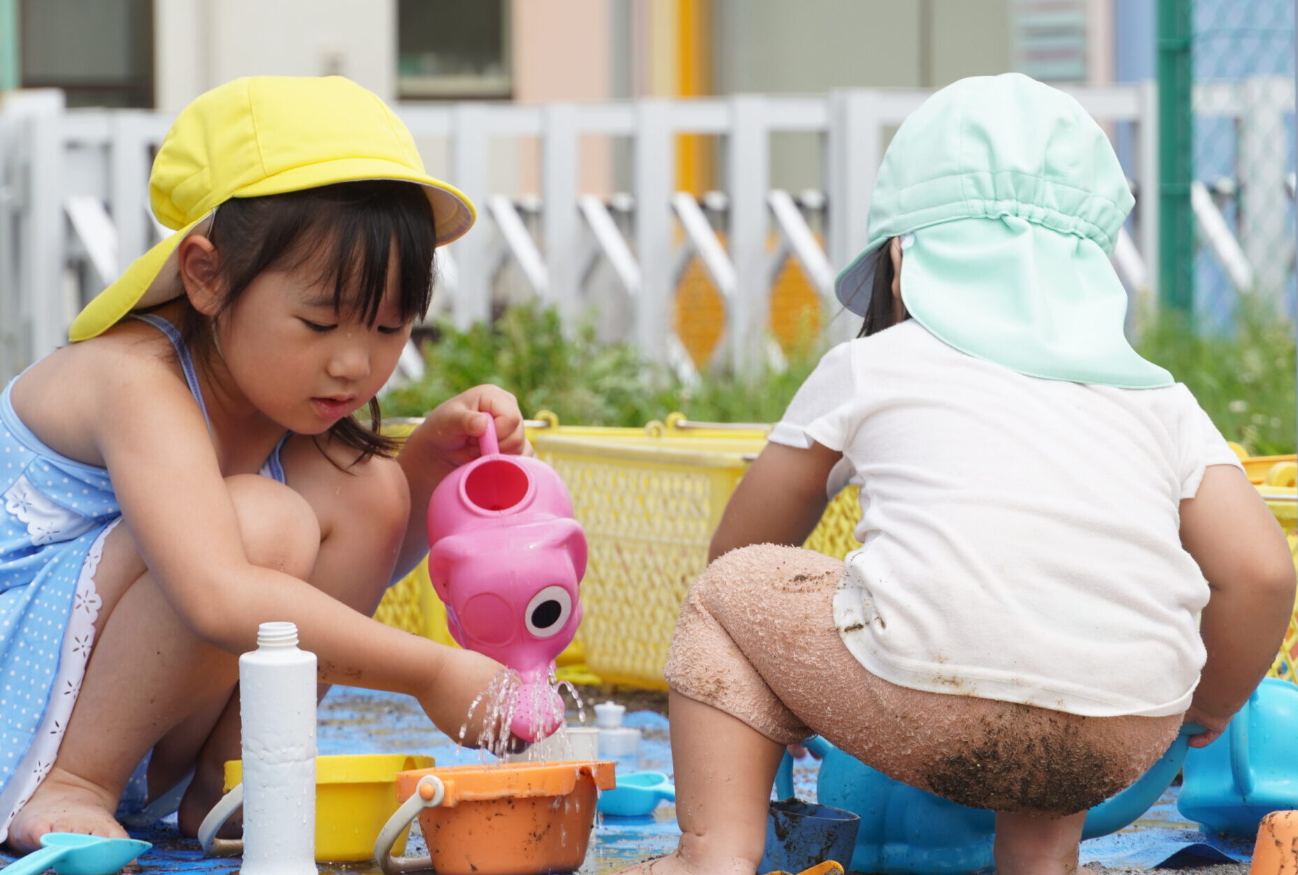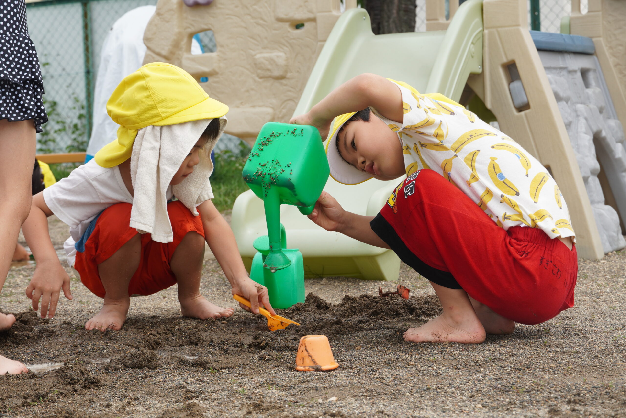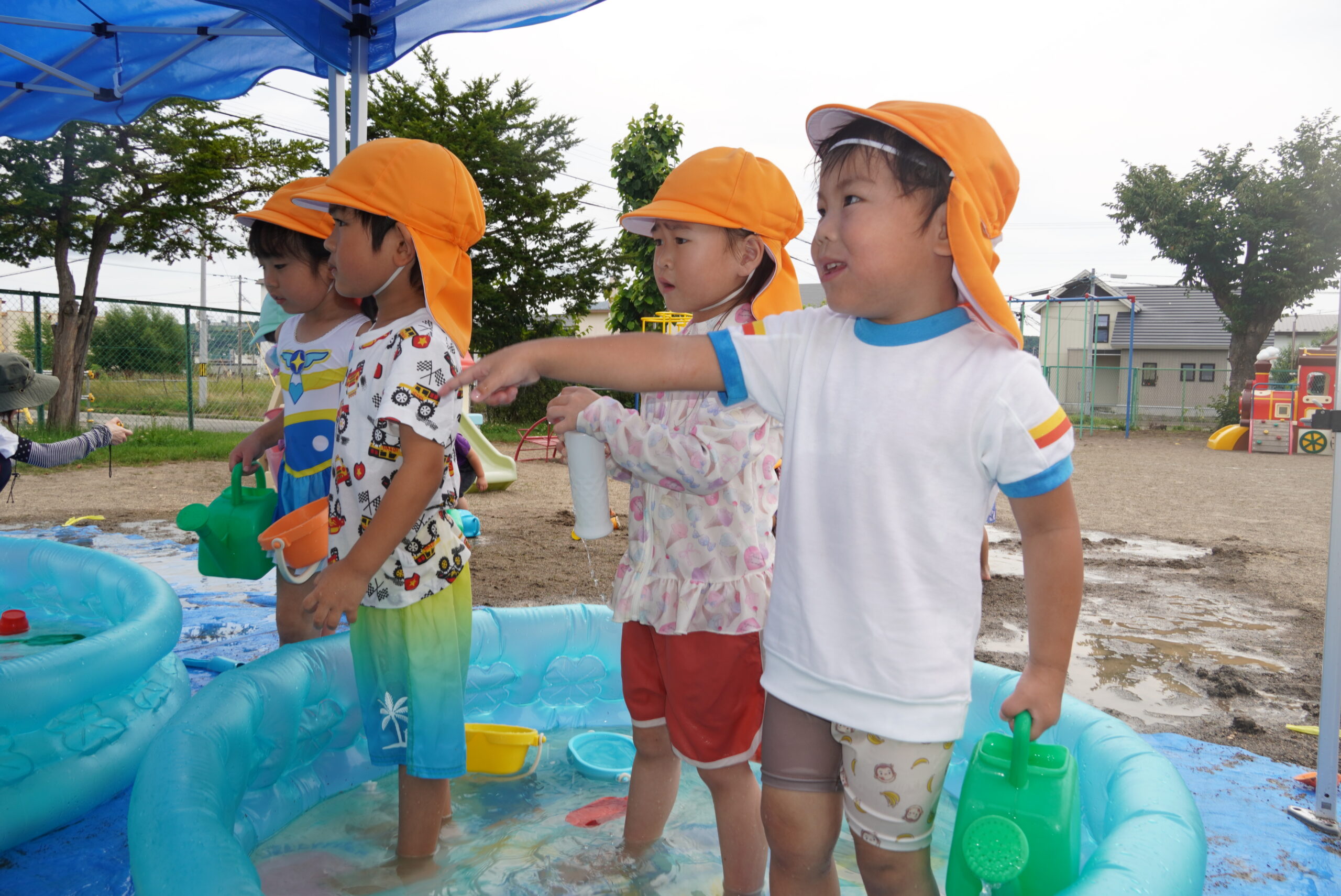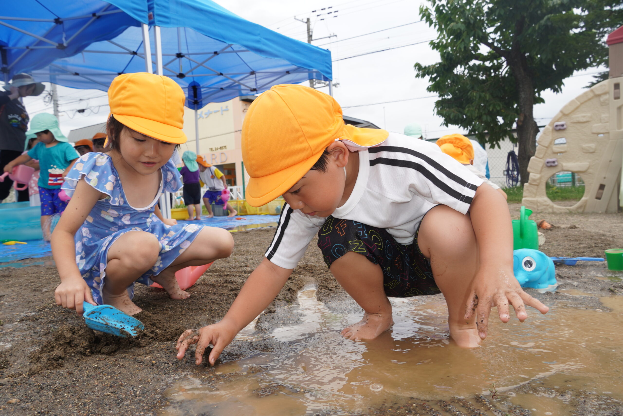 2歳~5歳のお友達が園庭でえのぐ遊びを楽しみました。