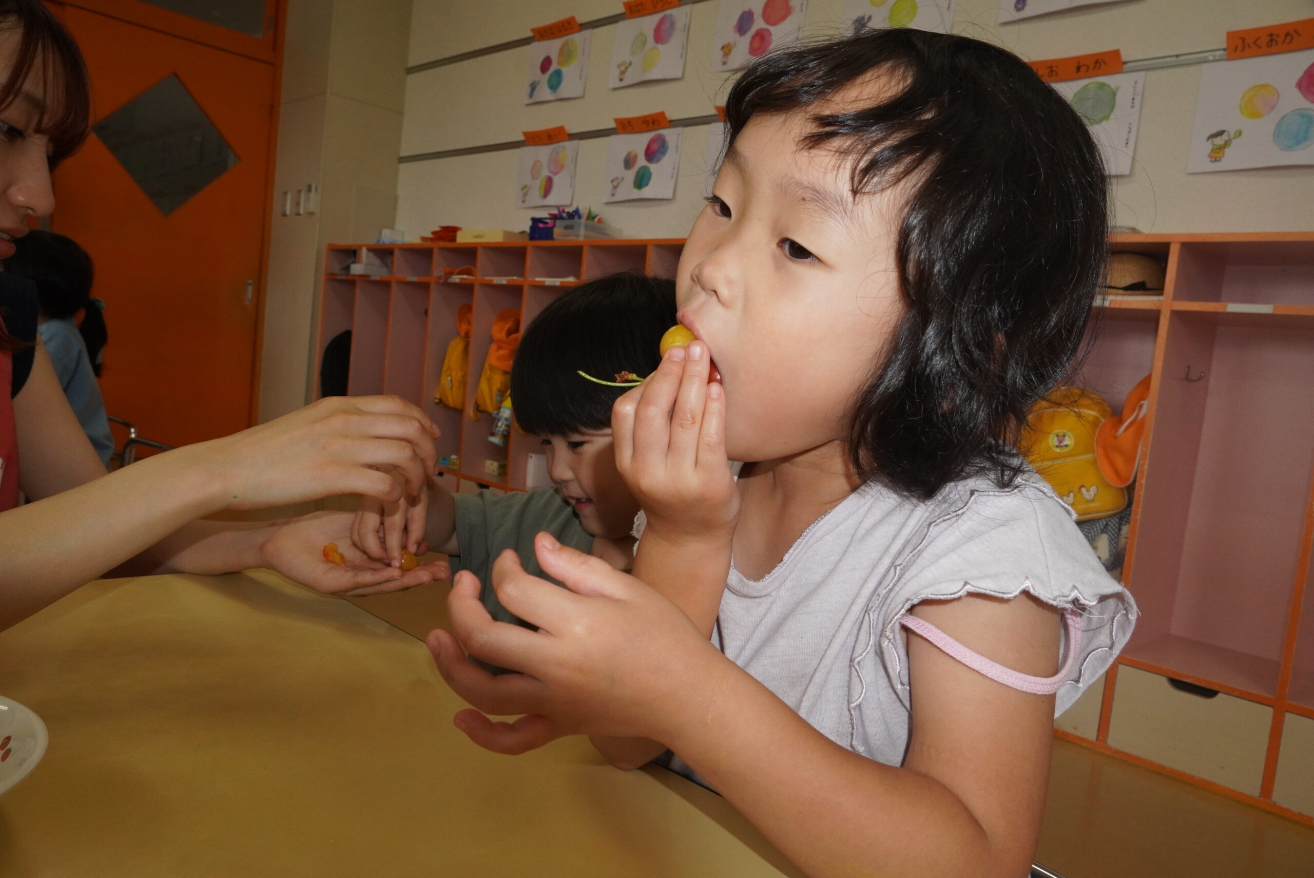 「5個食べた」、「20個食べた」と言う声も聞こえたり、ほっぺたの膨らみがリスみたいに可愛いお友達がいました。