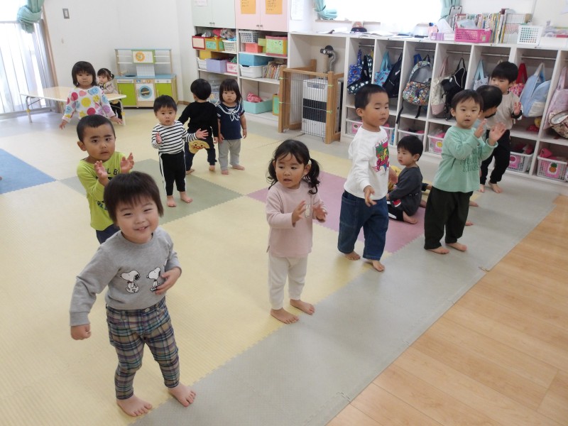 心と身体の調和を図り自己表現力を養うことを目的として、0,1,2歳児合同で取り組んでいます。